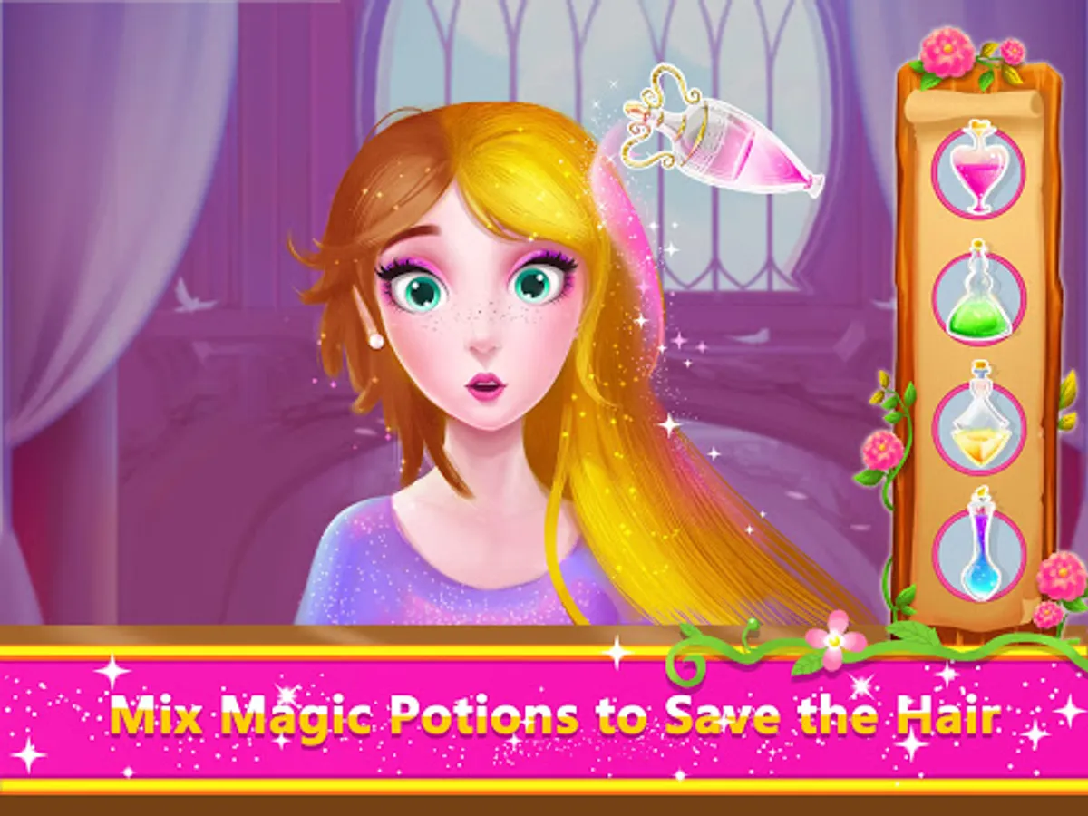The queen gave birth to a princess that had hair with special healing powers. We call her the long hair princess. The evil witch stole the princess because her hair could keep her from ageing and kept the princess imprisoned in a secret garden for many years. One day, an unknown man accidently stumbled into this garden with severe injuries.