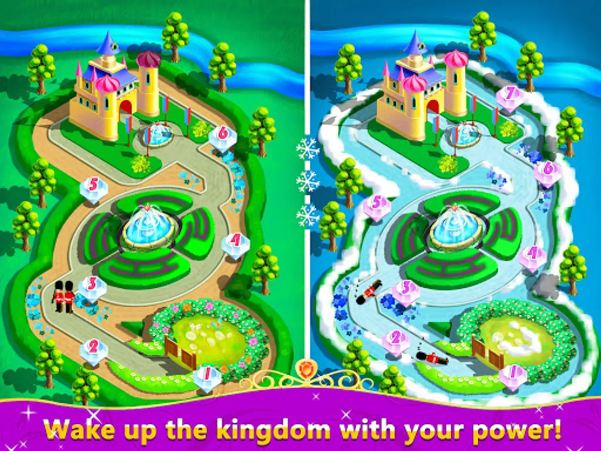 The long-haired princess finally reunited with her family. The king and queen held a ball to celebrate her return. But the evil witch appeared at the ball and placed a sleeping curse on everyone, and all the people fell asleep. The whole kingdom was blanketed in a thick sheet of snow. The princess reproached herself for letting the country get into trouble. The patron of the country told her they can help her wake up the prince, but she is the only one who can save the country.
