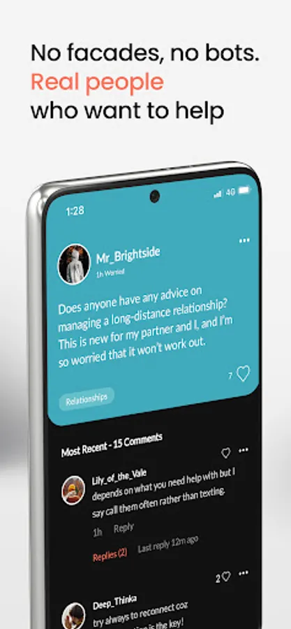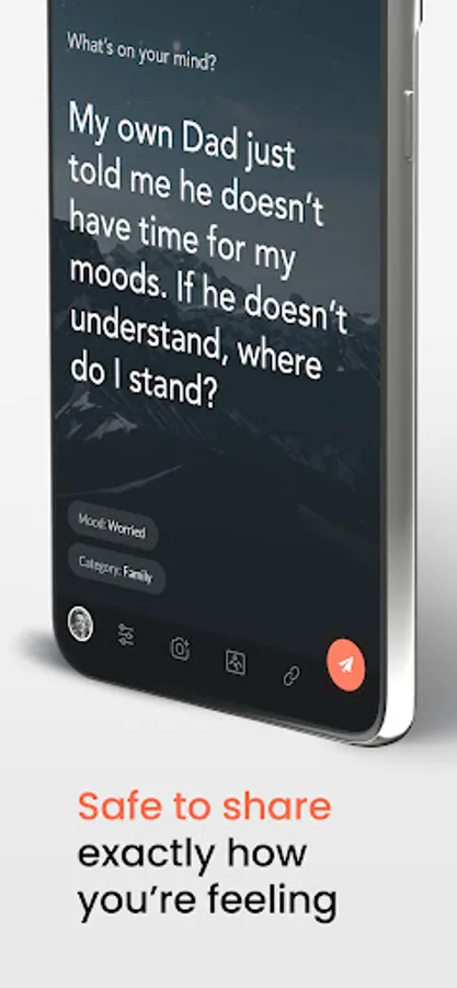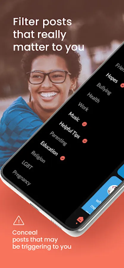 • Safely share struggles with anxiety, depression, stress, bipolar, self-harm, anorexia or suicidal feelings.