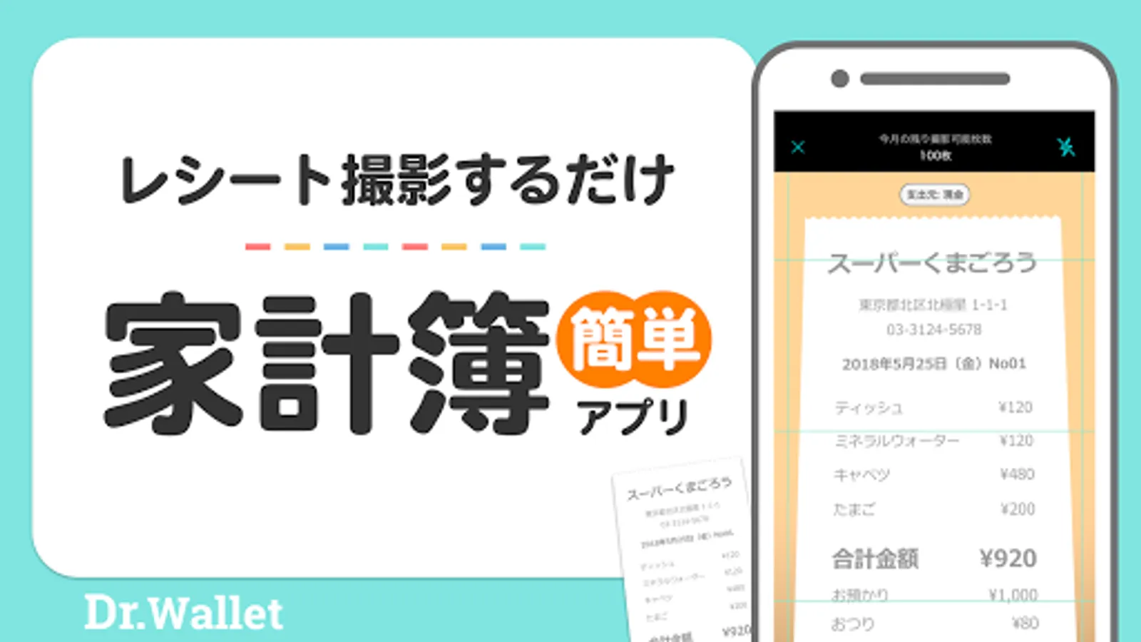 Household account book Dr.Wallet just takes a receipt and sends it, and the operator enters [date] [store] [amount] [category]. All you have to do is take a picture of your receipt every time you shop. Once you have sent all the receipt images together, Dr.Wallet will enter the household account book! It will be converted into data in as little as a few minutes.