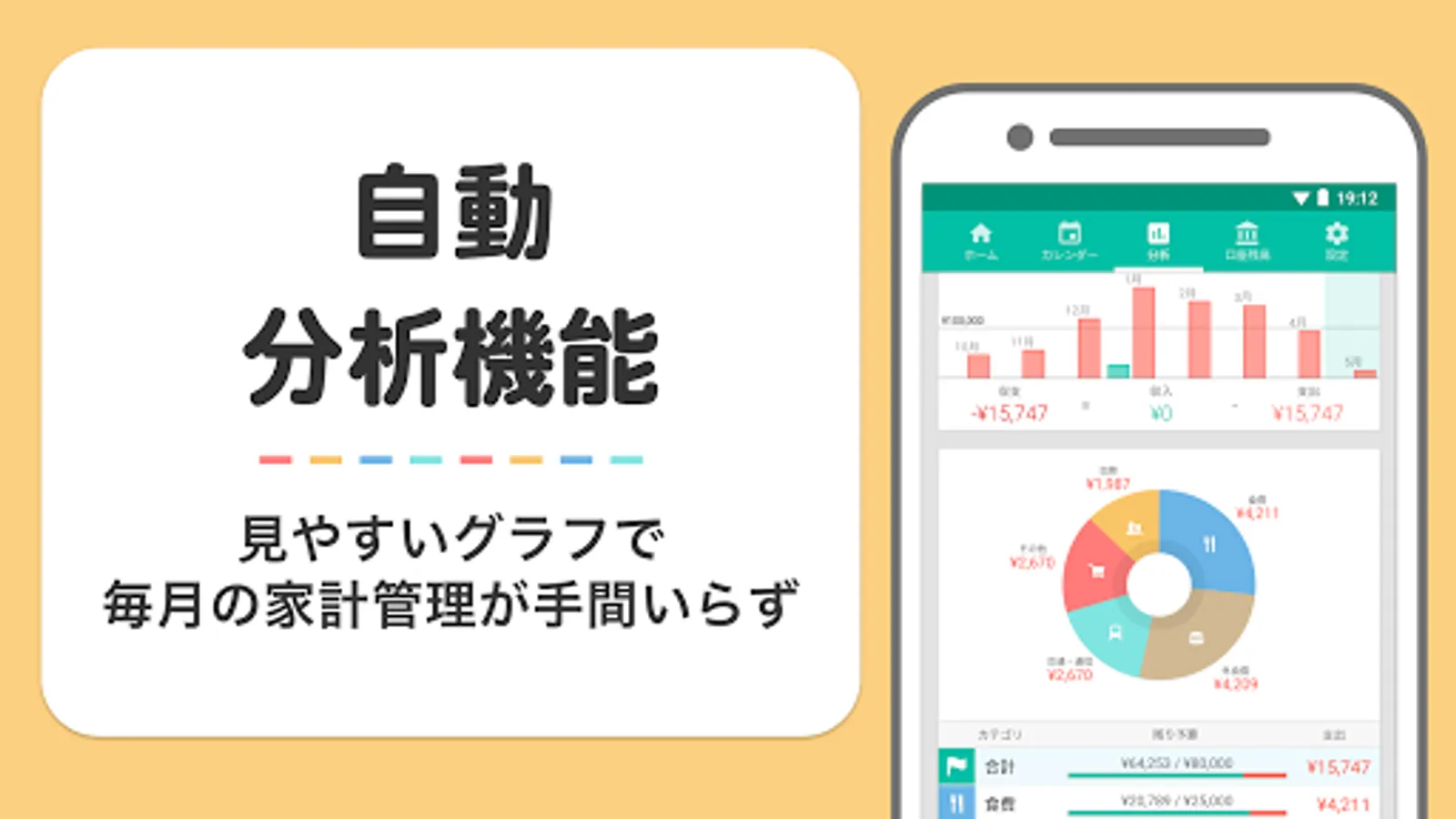 ■Analysis is simple and easy to understand. Save money by visualizing household account books with graphs!
