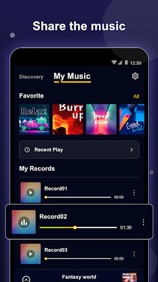 The app has a huge music library, including different categories of music, you can choose the song category according to your preferences, these categories include:
