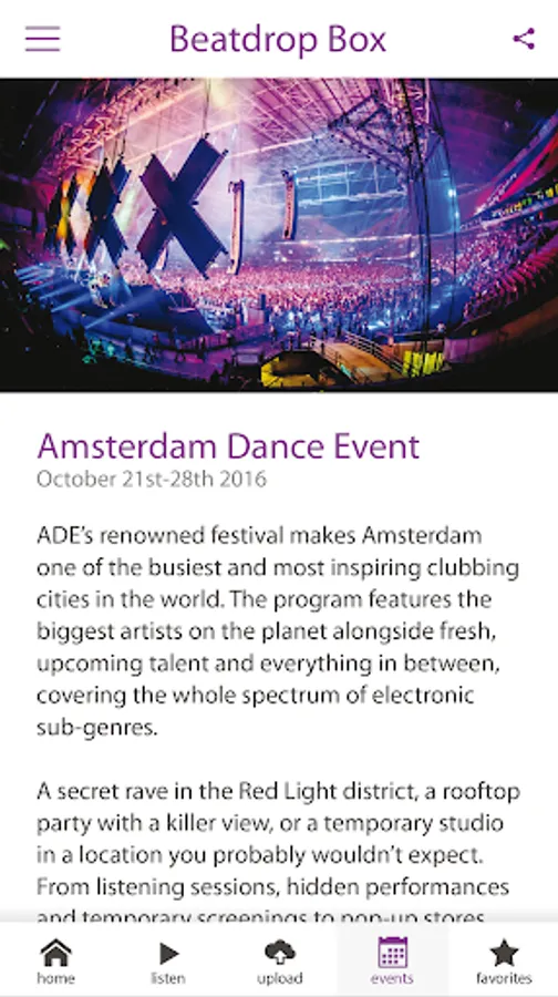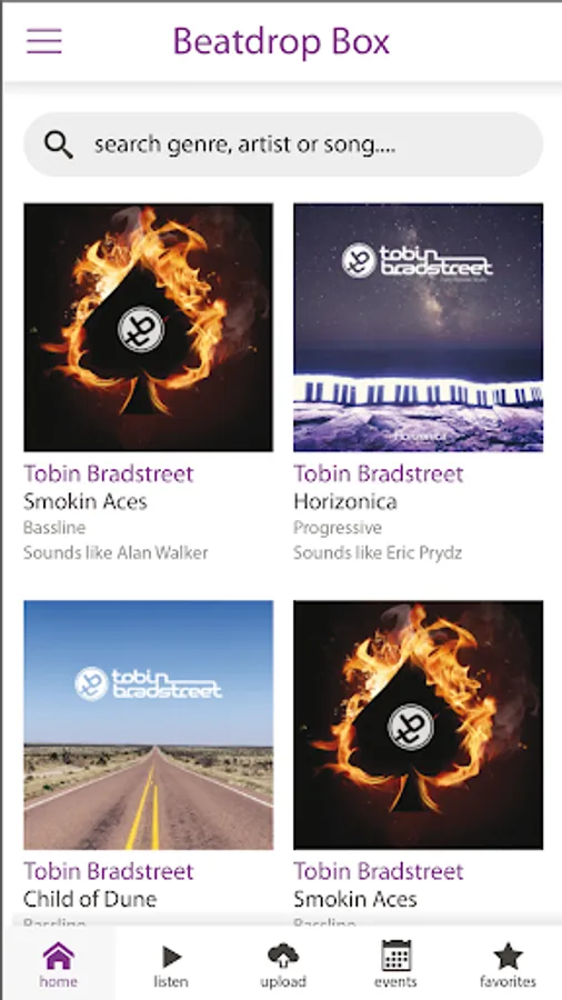 The world's most effective dance music and EDM drop demo app to listen to undiscovered beats AND send your own tracks to the most relevant electronic music labels. The BEAT DROP BOX® App is the World's first app to bring electronic music producers, DJ / EDM producers and listeners together AND Enhance your chances to be discovered in a powerful way! We support 255+ electronic genres such as: Dubstep, Electro house, Deep House, Trance, Drum & Bass, Progressive, Hardstyle, Techno, Big Room house, tropical house, Future Bass, Glitch Hop, Minimal and all downtempo.