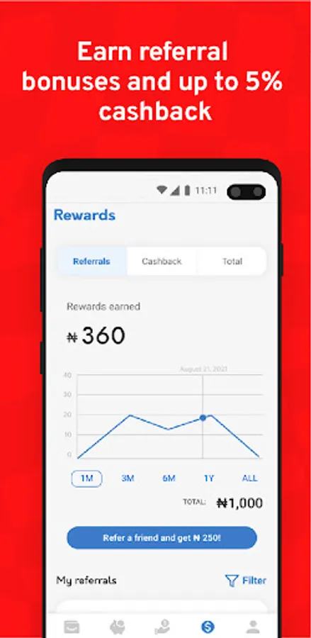 👍🏾 N10 when you refer a friend and family. Detailed earnings and analytics are available on the rewards tab on the app.
