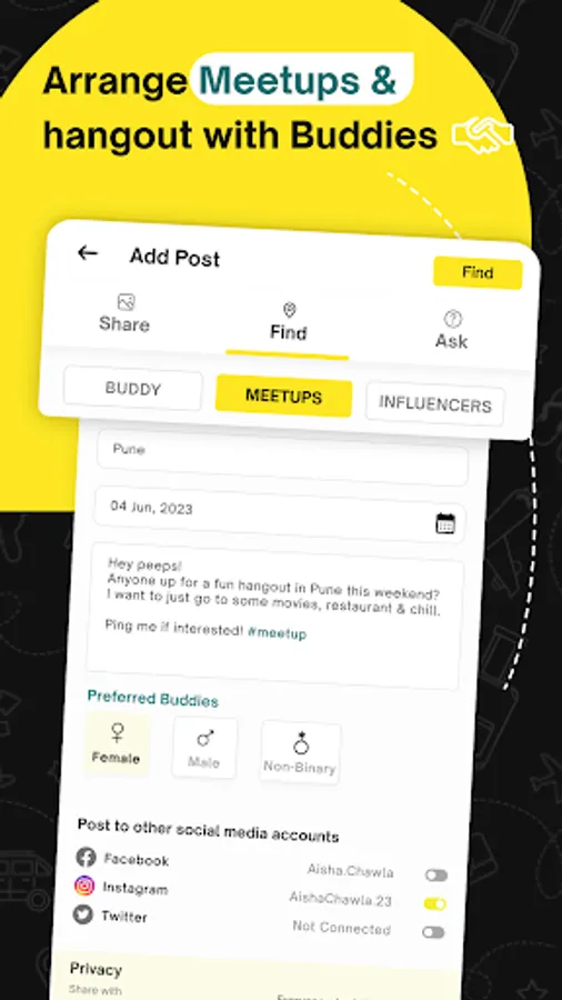 ** Can’t find someone to tag along? No worries, find local buddies👬