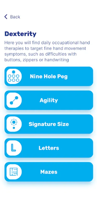 Our occupational hand therapies are based on recognised dexterity exercises for people with Parkinson’s, helping to make those everyday tasks easier. Our exercises replicate assessments and therapies traditionally used in hospitals and clinics, giving you an easy way to practice those important hand movements which you may be finding difficult.