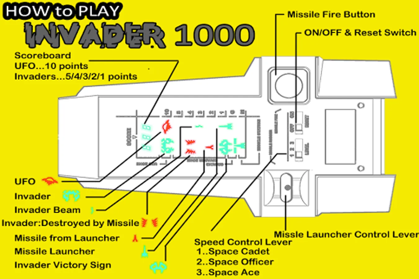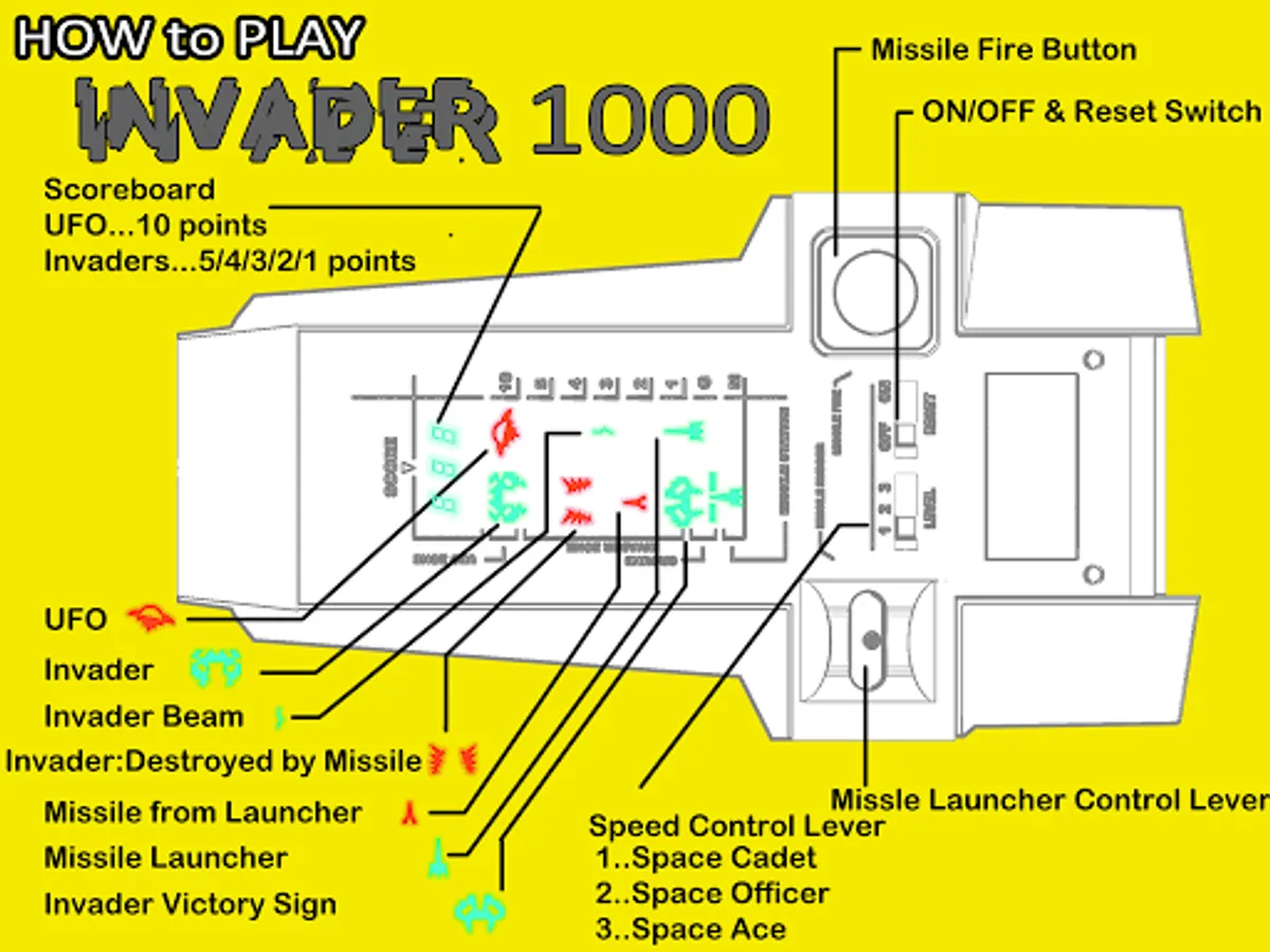 2. Move the Missile Launch lever side by side to aim at Invader or UFO and press Mssile Launch button.