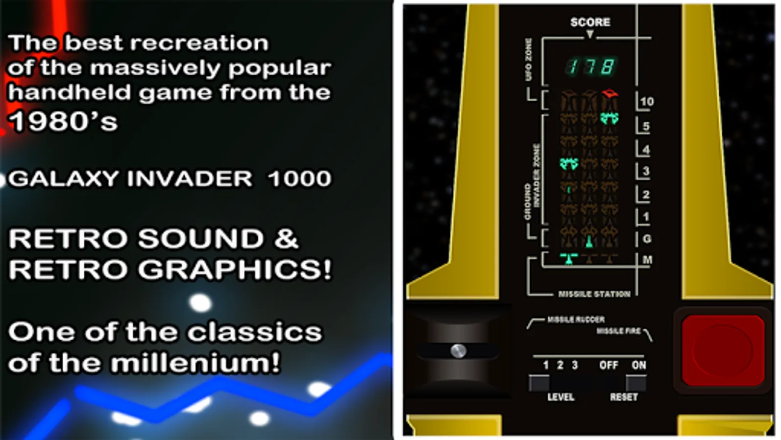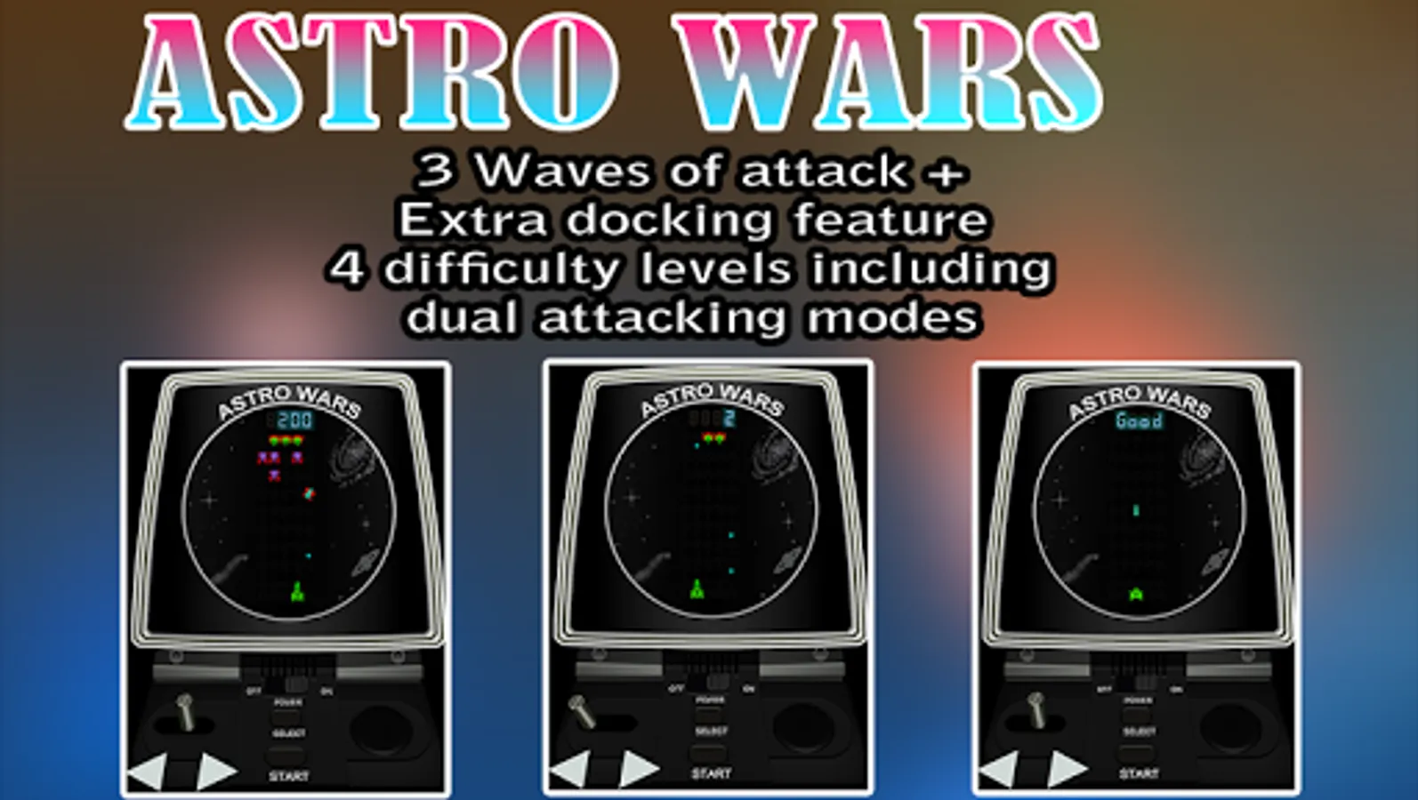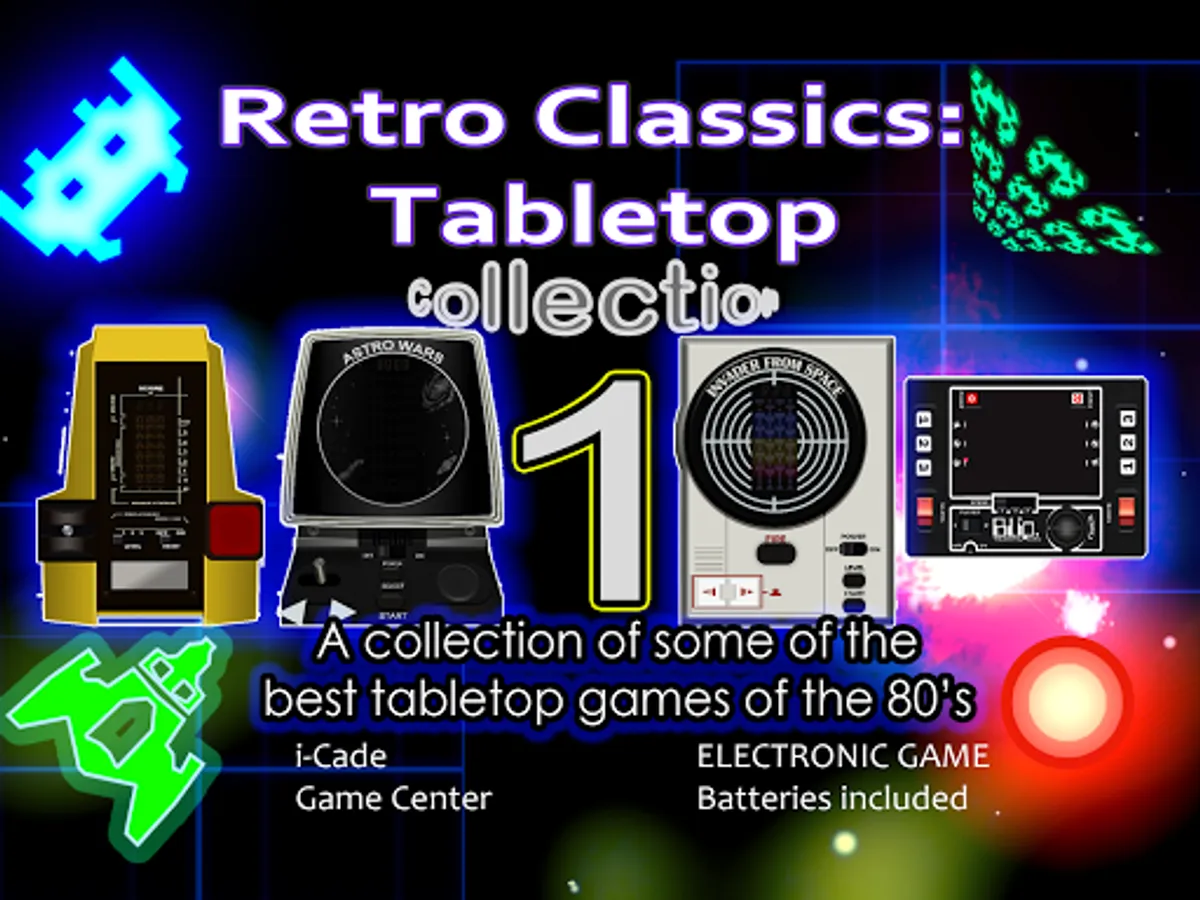 Before the internet and mobile phones, tabletop games of the 70s and 80s were beautifully simple and addictive. Imagine going back in time to see your old vintage games (or your friends' old games you couldn't have!) Now you can own some of the best handheld/tabletop games of that time in this classic tabletop arcade games collection. Astro Wars and Galaxy Invader 1000 are highly rated, Invader From Space - a cult classic; and even more retro is the mechanical classic Blip - before even LCD or VFD (vacuum fluorescent display) games! Nostalgic but fun for all ages! Check the screen shots to see how accurate these are!