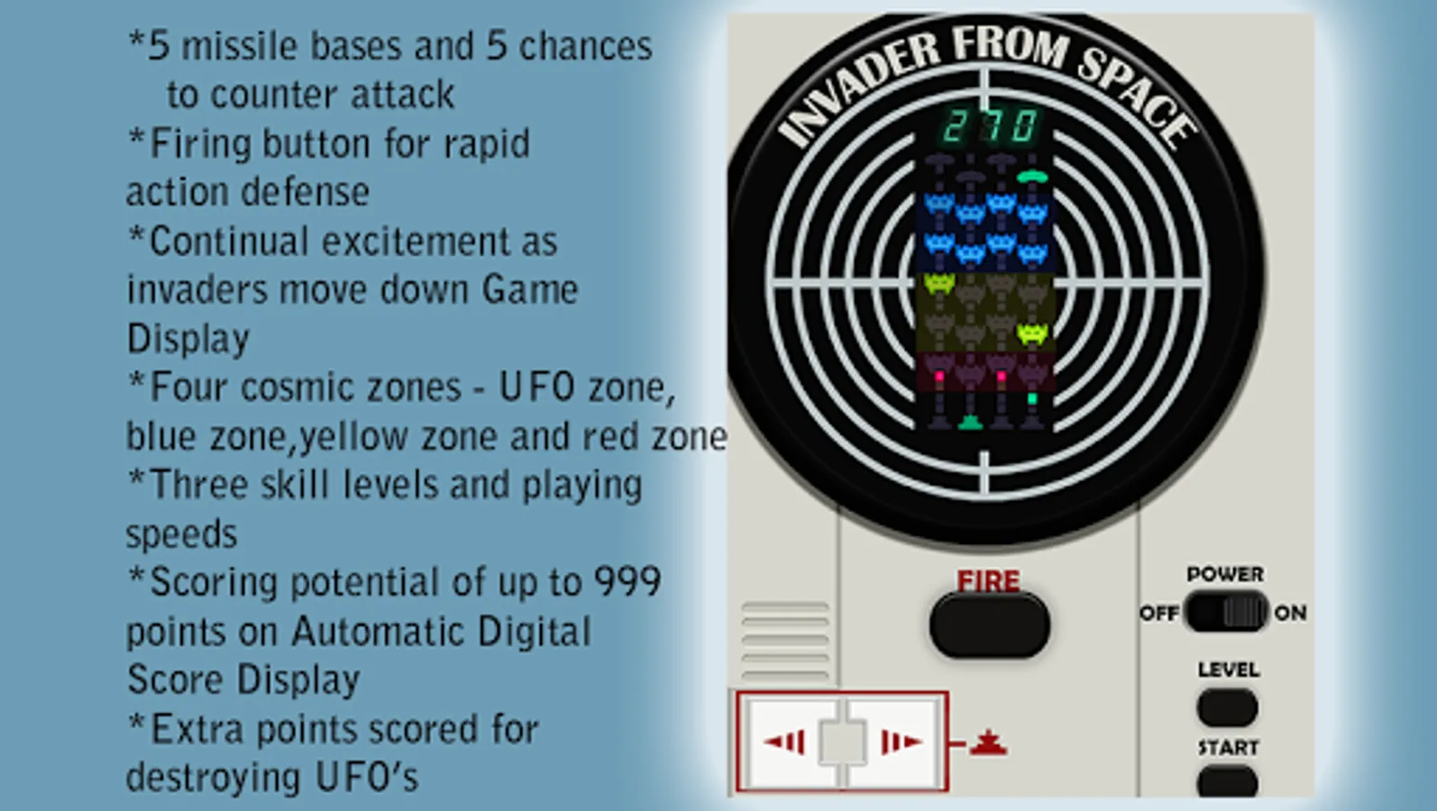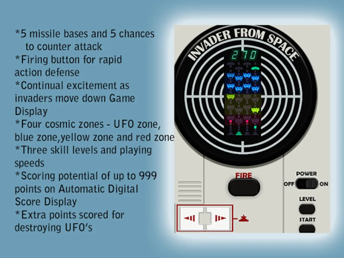 2. Move Missile Launch lever to aim at Invader or UFO and press fire.