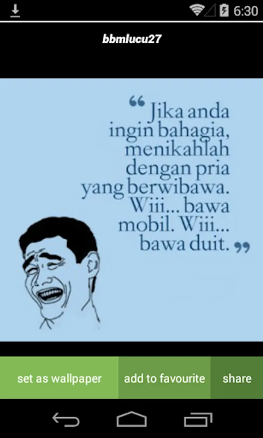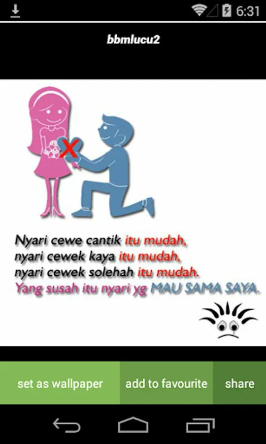 Image Words contain a picture of words romantic, wise love, sad, upset, funny, for DP profile photos and other social media. How to use this application is very easy. You simply select the image you want, then you can save these images in your gallery. These applications also allow you to share the image on social media is cool.