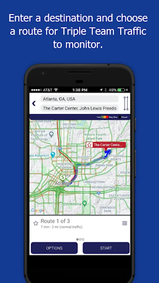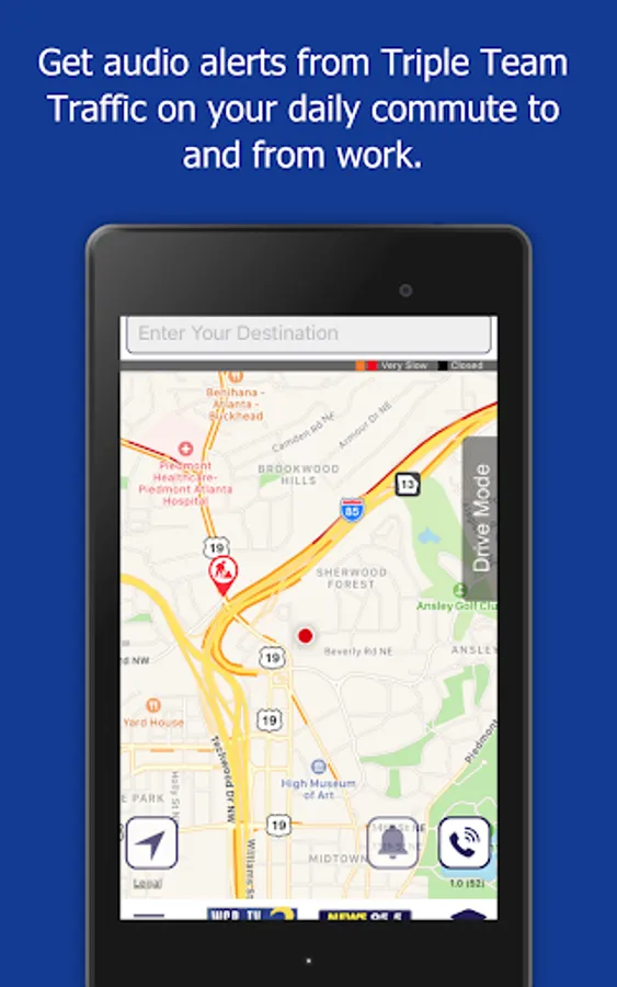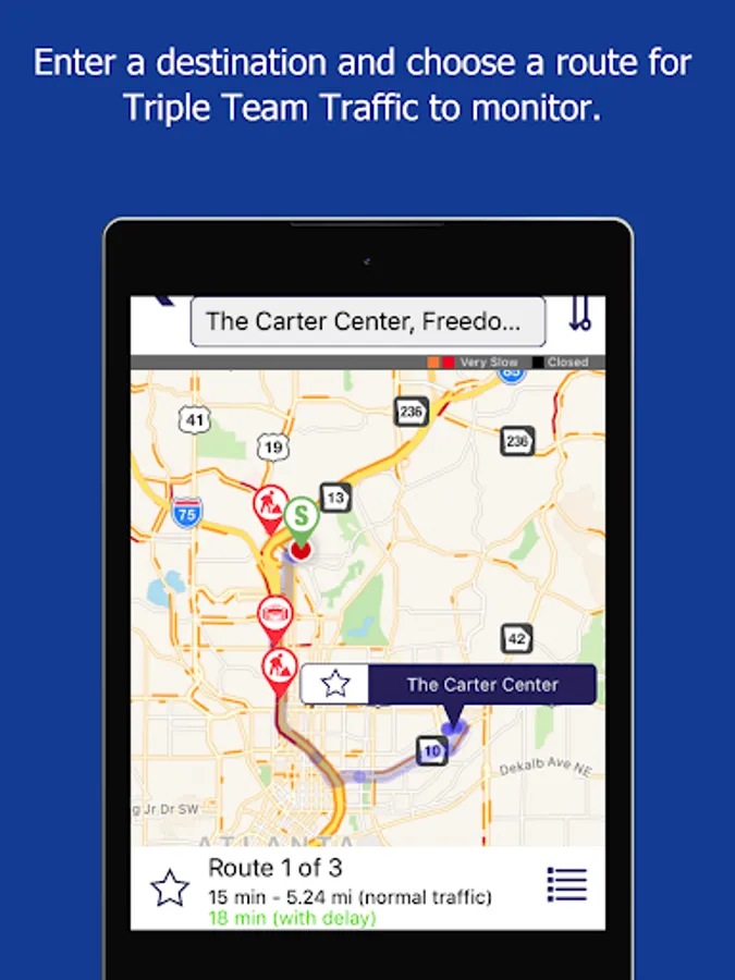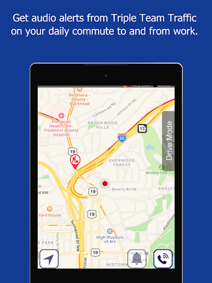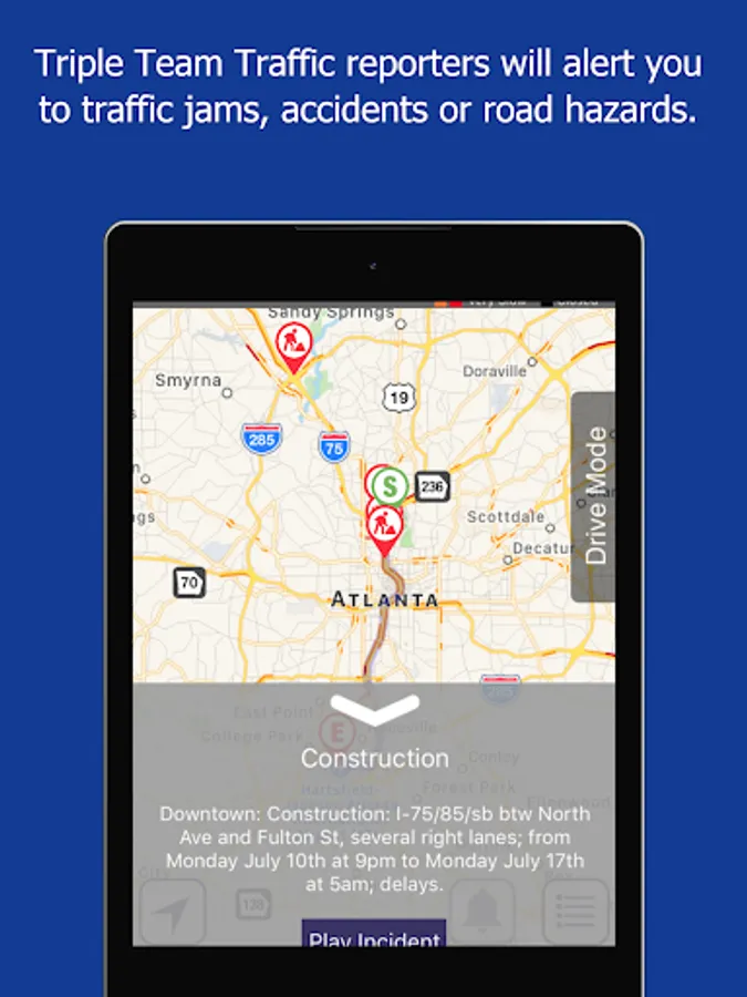 * HANDS-FREE, AUDIO TRAFFIC ALERTS signal when traffic goes from Atlanta's normal “rough commute” to “impossible” providing alternate options when available. You can decide to take an alternate route, work from home, or call ahead to alert your boss or family of a late arrival!