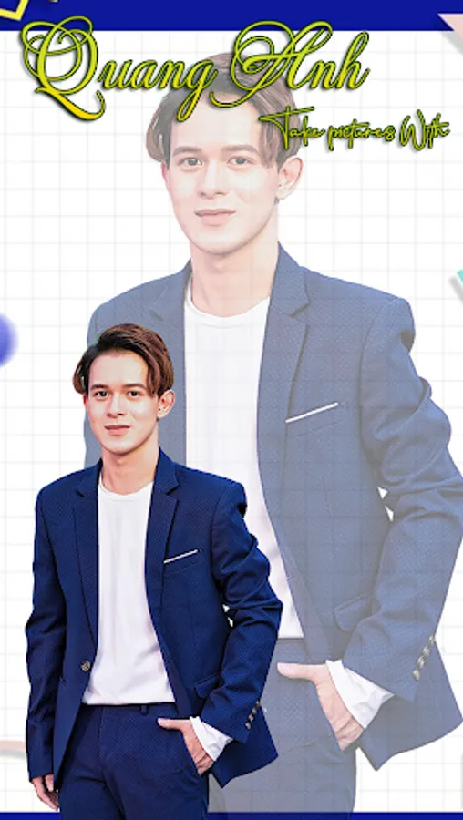 You want a collection of celebrity wallpapers and images. Make your dream come true by taking pictures with famous people and actors. With the help of Quang Anh Camera, you can be with Quang Anh wherever you are.