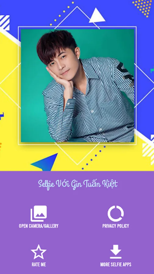 Selfie With Gin Tuan Kiet is Photo Editor for fans and favorites Gin Tuan Kiet, This app is purely for entertainment and fun, to decorate your photos and impress your friends and friends. family members.