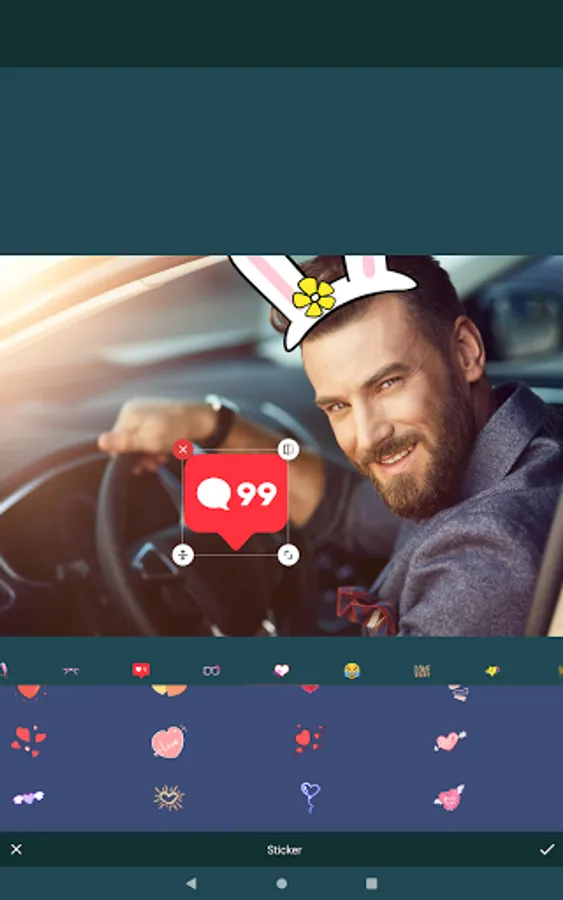 Stickers: Choose from more than 500 vivid stickers divided into topics such as Tattoo, Crown, Six Pack, Ghosty, Anime… to insert into your photos