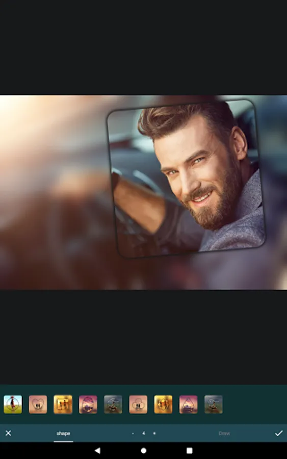 Enhance the photo by creating a blurred one as the backdrop behind the original one. Adjust the opacity and choose the type and size of image border.