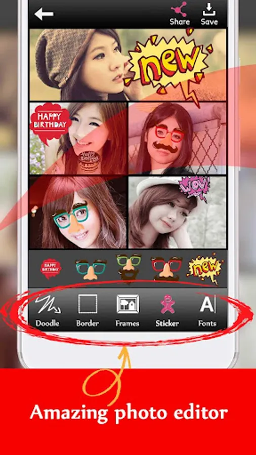 *Stickers, tags, emojis, texts, and photo frames: tens borders and frames