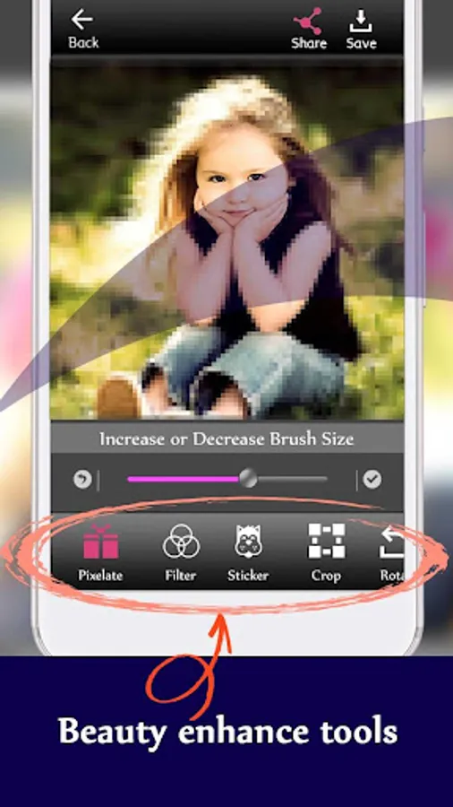 *Adjust Lightness, Contrast, Tone, Smooth,Saturation,Pixelate