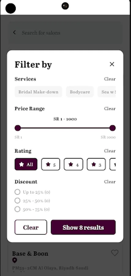 Introducing our revolutionary Android app designed exclusively for salons in Saudi Arabia, catering to the needs of women. With a concise and user-friendly interface, our app aims to enhance the salon experience by providing a wide range of features and services conveniently at your fingertips.