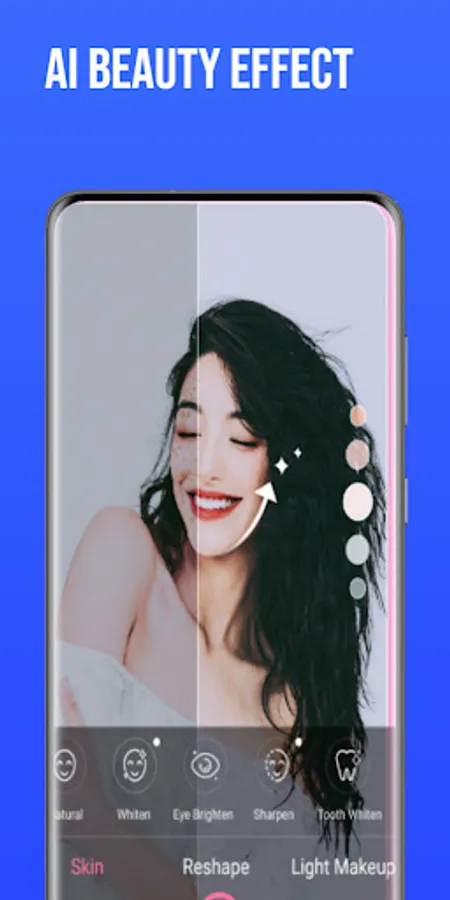 Beauty Camera - Selfie Camera, HD Camera Effects has a user friendly interface. You can use popular effects such as face whitening effects, acne removal, acne remover. Besides beautifying your face, you can get funny photos with funny face filters, funny stickers and sweet camera effects.