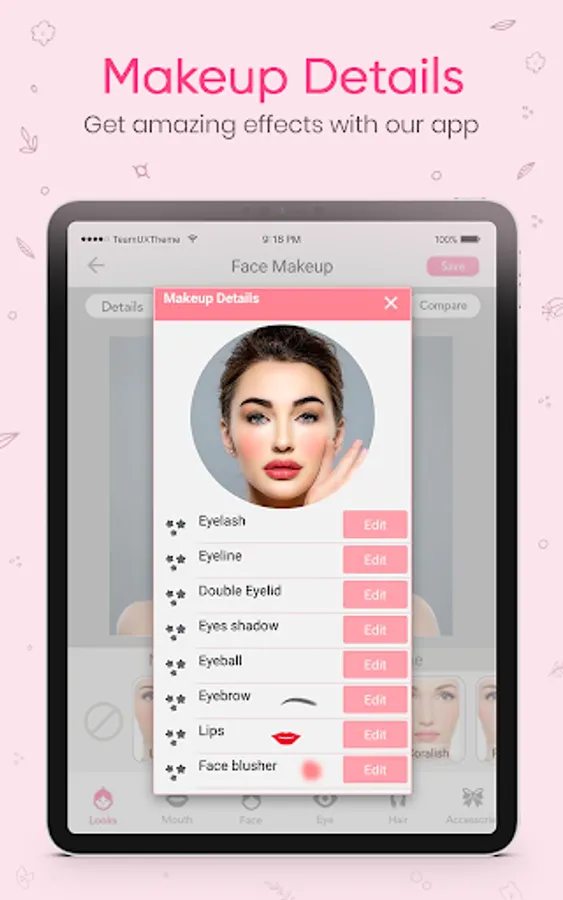 Beauty Face Makeup Photo Editor is a FREE beauty editor app to beautify your photos. Your photos and selfies with have amazing natural beauty. We use advanced algorithm for our makeup kits & features. You can add and adjust lipstick, eyebrow makeup, bright eyes, blush and other makeup artistry on your face. The best thing about our app is that it automatically detects parts of your face so you don’t have to painstakingly edit each part like if you’re using foto shop! When the pic is finished, you will be stunned by the metamorphosis of your look with just a few taps.