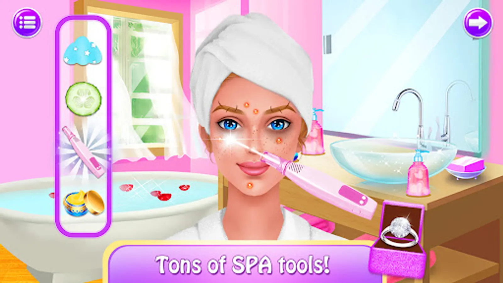 Your dream is coming true! You’re getting your first big break as a wedding makeup artist. Your appointment time with a beautiful bride is going to be today, so you’ll need to get ready! Your bride is going to need a relaxing beauty spa to get her in the right place mentally and physically for her big day. Then, you’ll give her a beautiful bridal makeup design to help her look absolutely stunning. Then, you’ll help her into her gorgeous wedding gown. She’ll be the happiest bride and will be willing to tell all her friends about your excellent makeup skills!