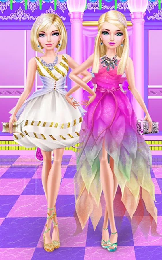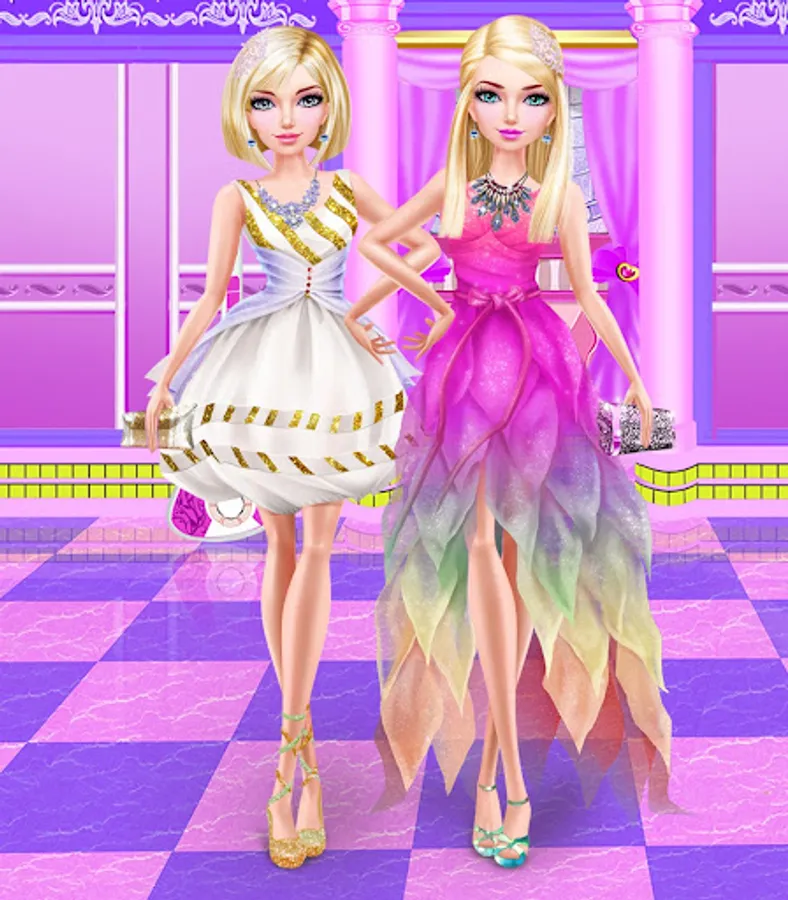 Dress up each girl in cute outfits and accessories.