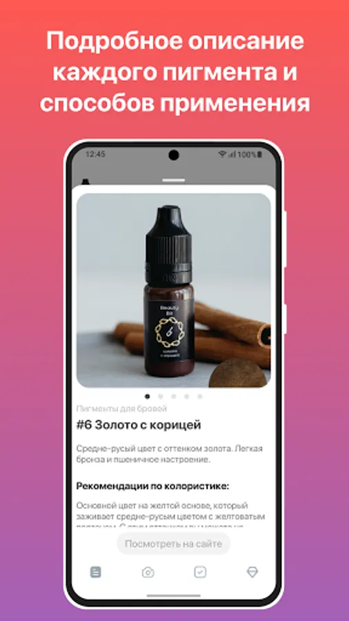 Another advantage of the application is the description of Beauty Bit brand products with reference to the sources of their sales. You will be able to quickly navigate in all the intricacies of working with the manufacturer's materials.