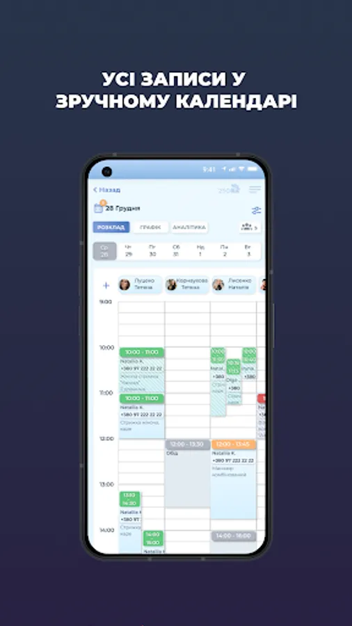 CRM система в нашому додатку для салонів краси та майстрів. Календар для запису Клієнтів, статистика ведення бізнесу, графік майстрів з перервами в часі, систематизована база Клієнтів, облік витратних матеріалів, облік доходів та витрат.