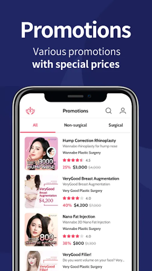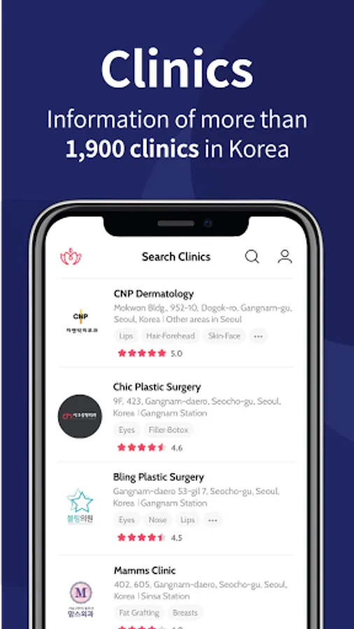 The essential plastic surgery information app with over 1,800 plastic surgery clinics and 4,450 doctors, with more clinics and doctors added regularly.