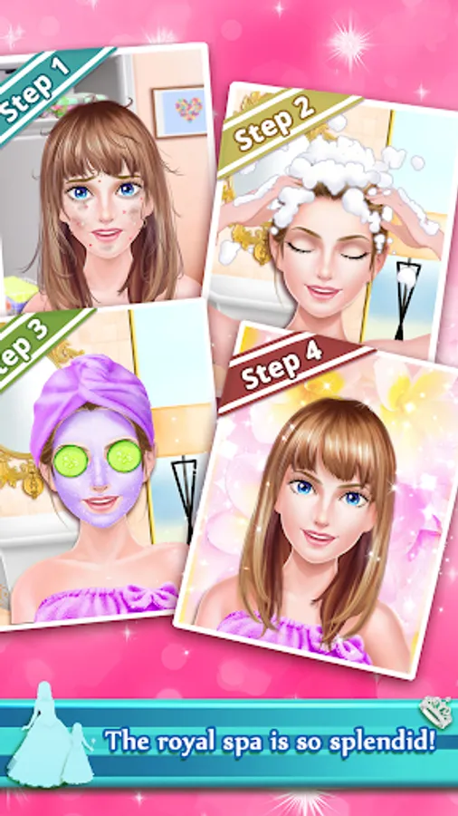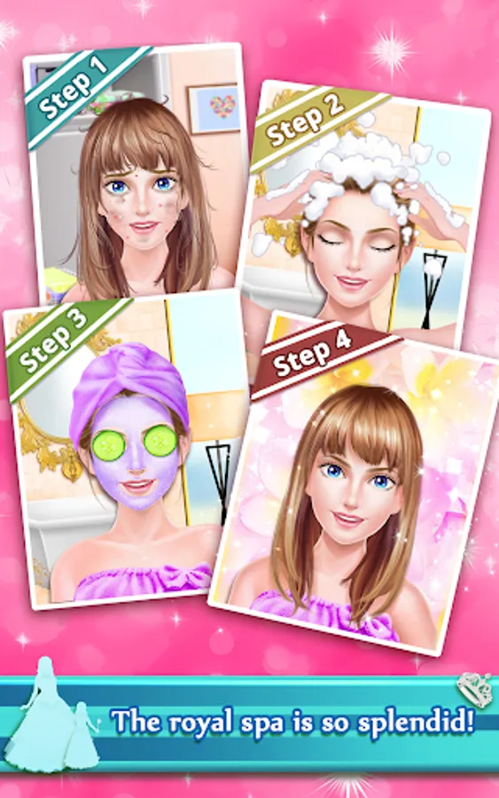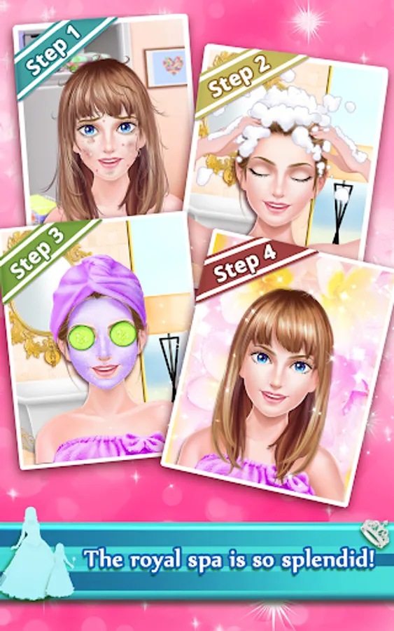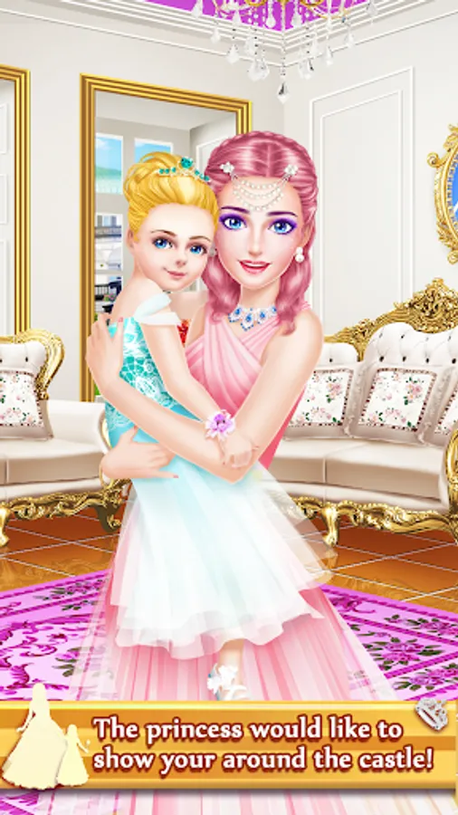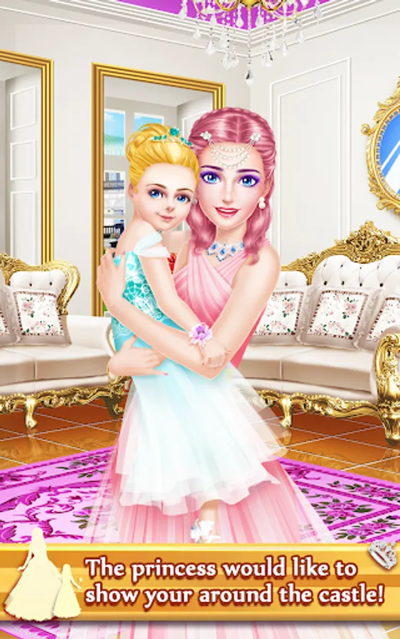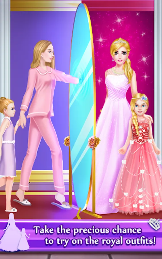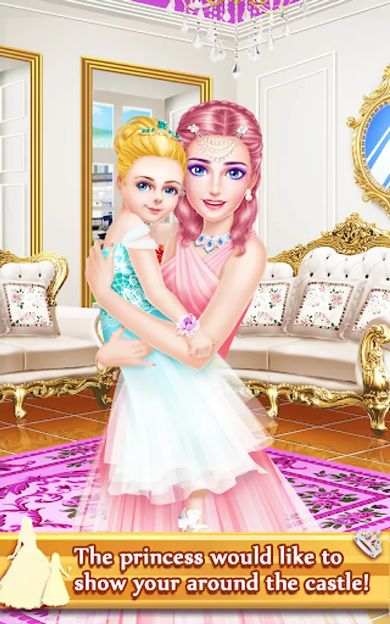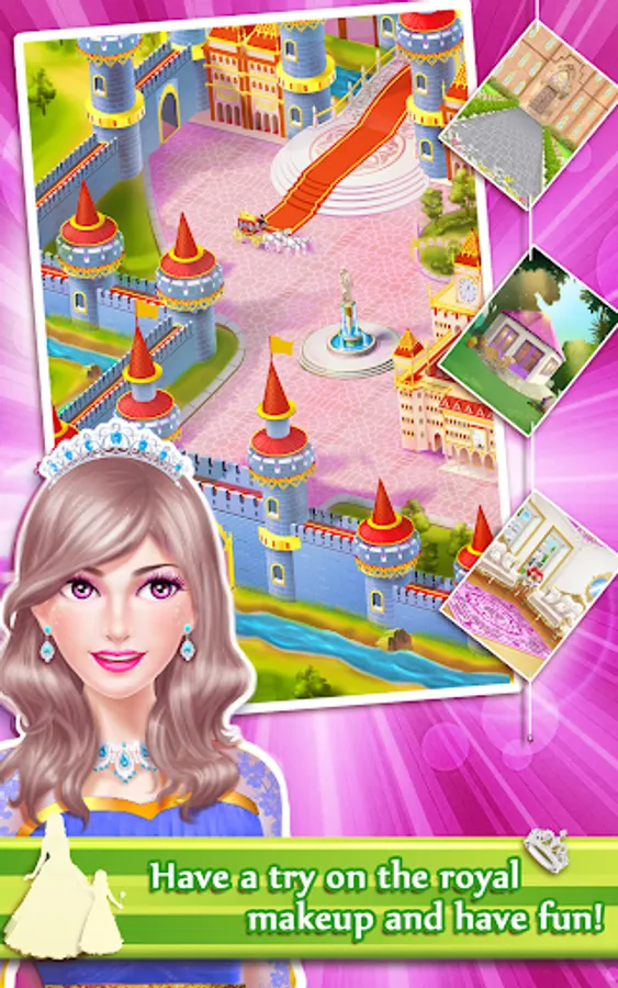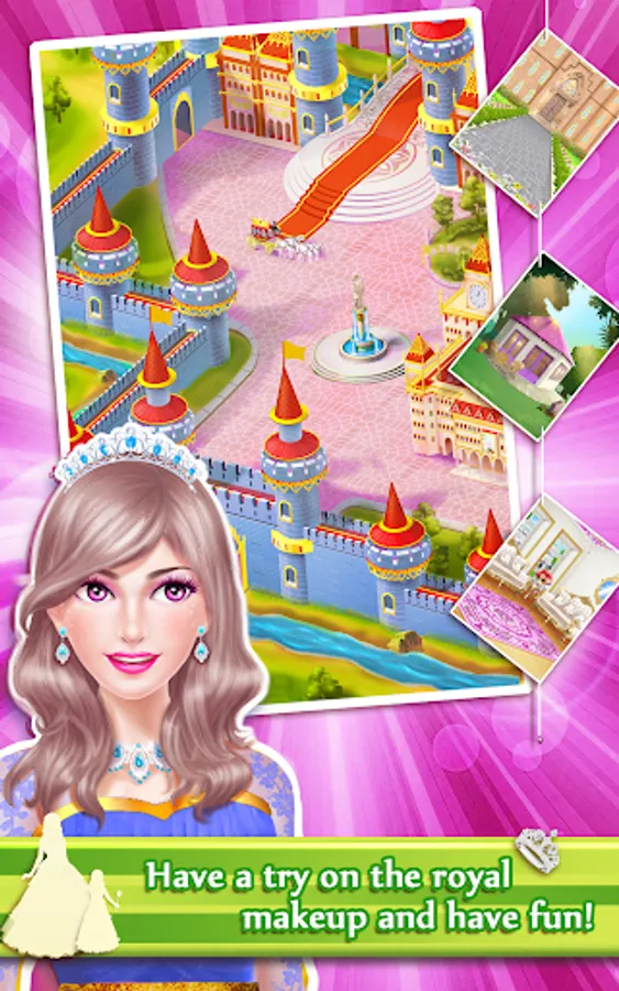 First, use the professional salon tools - colorful masks, skin moisturizer and hair remover to make the queen happy! Who can say no to Make up! Find blushes, mascaras and eyeshadows in the makeup room, and apply them on the face by simply tapping on them! Now that the queen and the princess are ready, it’s time to go to different places for big parties.