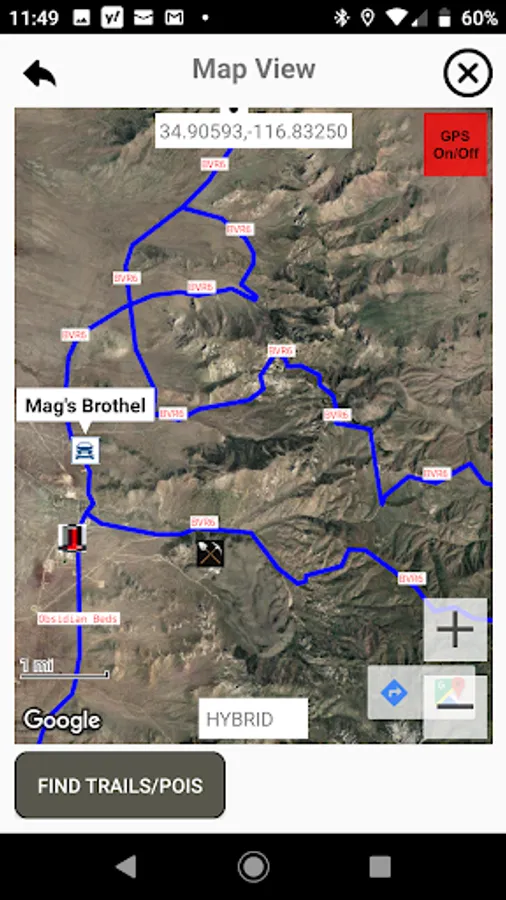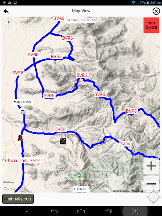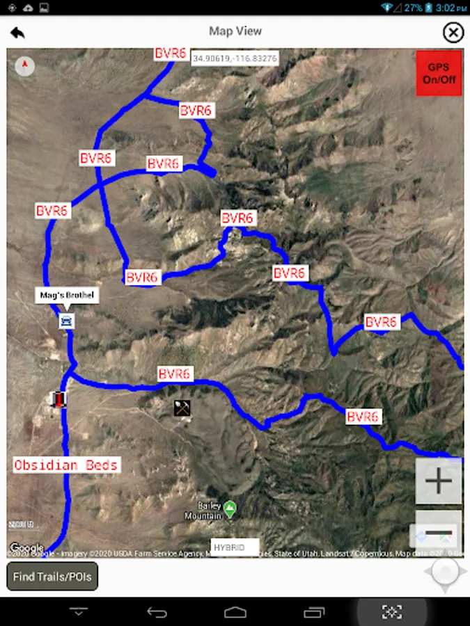 Lifetime Map, no annual Fee, no in-app purchases. Beaver ATV Trails. Beaver Utah has many mines, steam vents, obsidian, a ghost town, an old brothel, and many more interesting things to discover. There are in excess of 944 miles of Trails mapped. If you are traveling, it has at least 6 hotels. The folks there are big on riding ATVs, so you will be among friends. They have an ATV Jamboree, usually in May, much like Panguitch, Paiute and Kanab, for example. There are several National Parks within driving distance also. Get this App and you will be less likely to get lost. It shows you where you are in relation to the Trails, using your Android Phone or a Tablet if it has a real GPS. The App does not rely Cell Towers or WiFi, it uses your phones GPS. That way you can stay on provided trails and not get lost or make new trails where they are not wanted. Points of Interest are marked, and, like the Trail Numbers, one touch tells you the name of the Trail or Point of Interest.