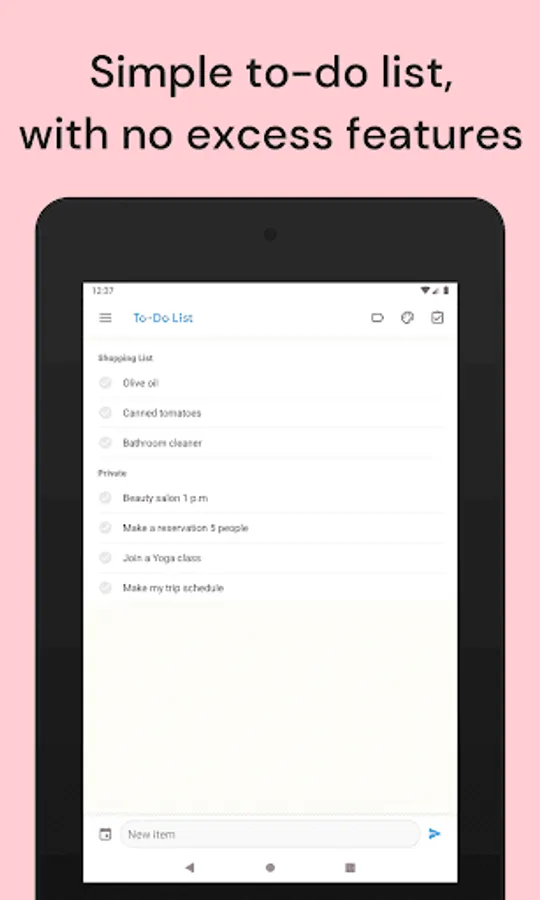 LIST allows you to write down and sort through lists easily whenever they come to mind, including things that you might want to do or which you do not want to forget; for example, items to buy, official paperwork to be done for government/public offices, or even those really small things that you just want to keep in mind.