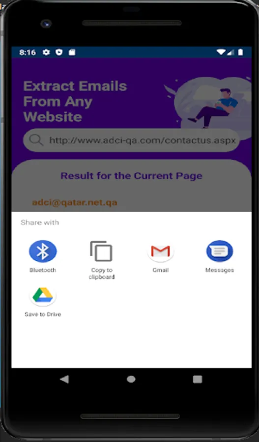 Easy way to extract the emails from any websites, with ability to share the emails, and send it direct