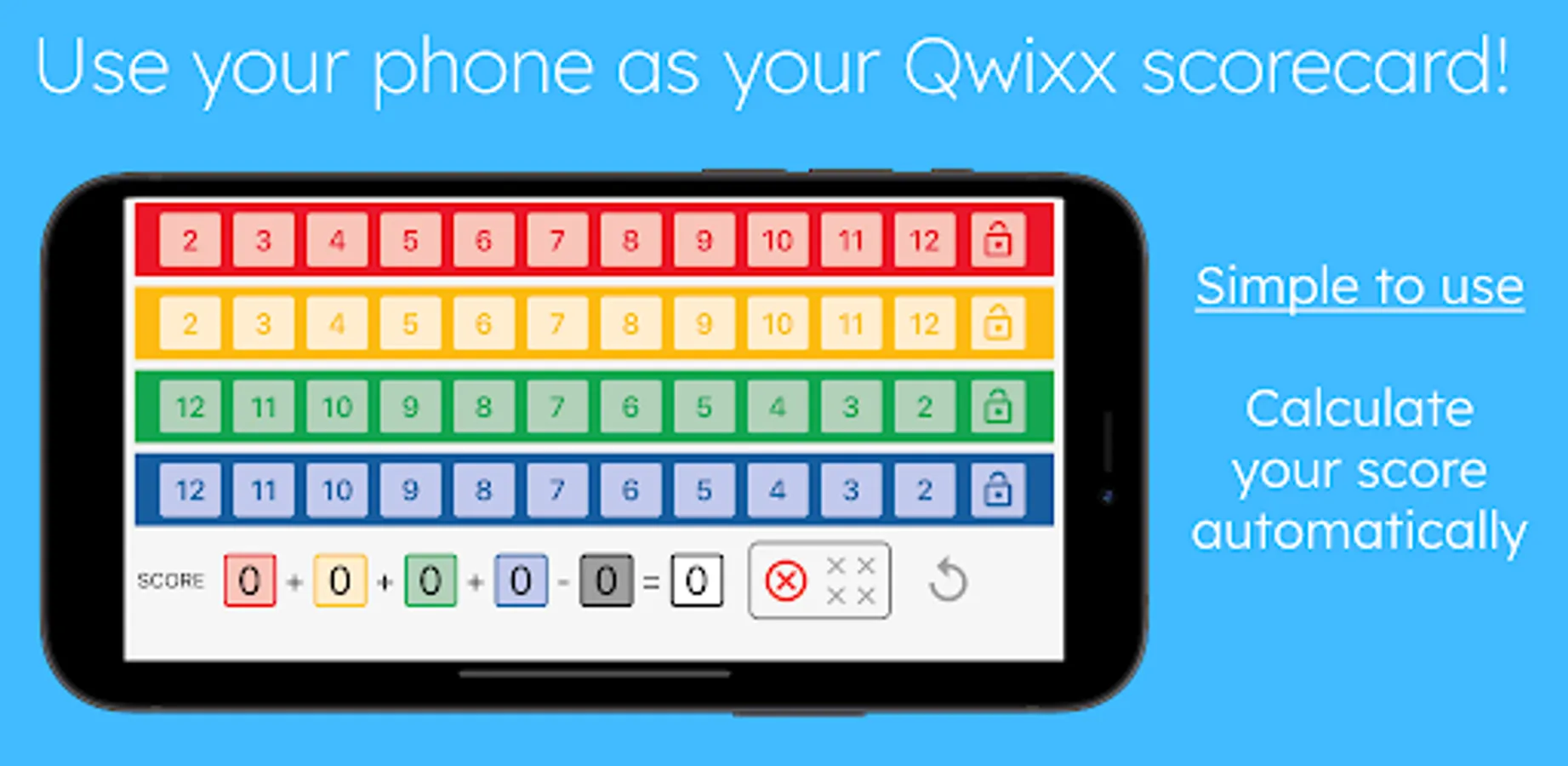 - Score your Qwixx game automatically as you go. No more head math!