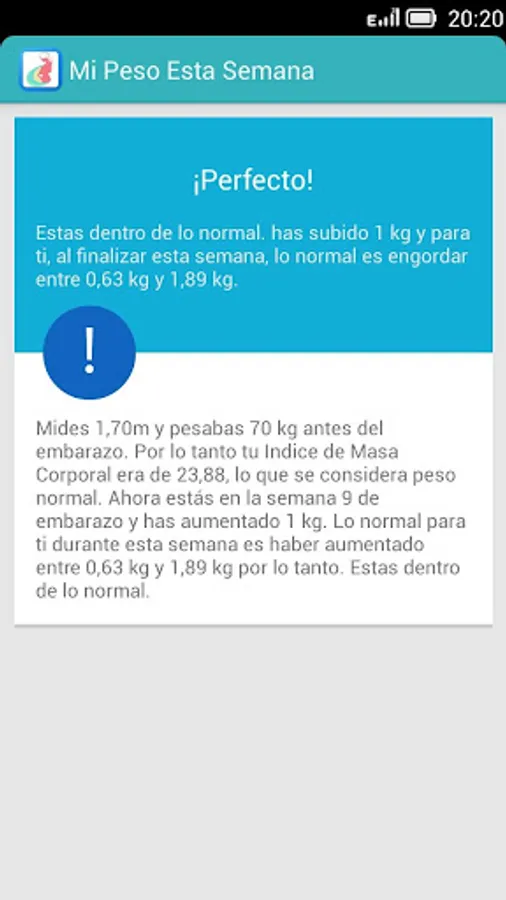 Healthy Pregnancy is a very complete application for pregnant women. It allows you to enjoy your pregnancy with all the information you need to know about changes in your body and your baby's development over the 40 weeks of gestation; with our weight calculator, especially for pregnant, you can control your weight properly and give adequate follow-up to it, and will ensure the current and future health of your child.