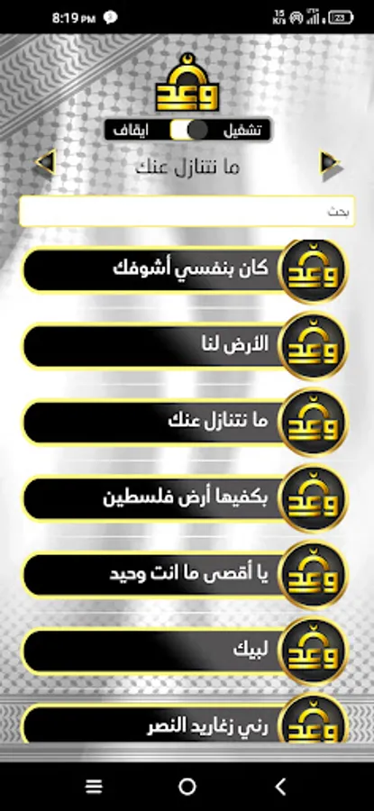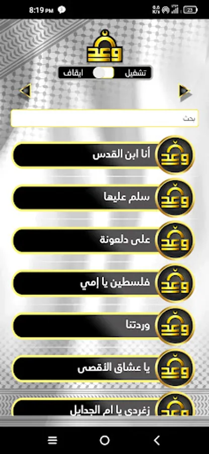 You can listen to the most beautiful Palestinian national songs through the Waad application
