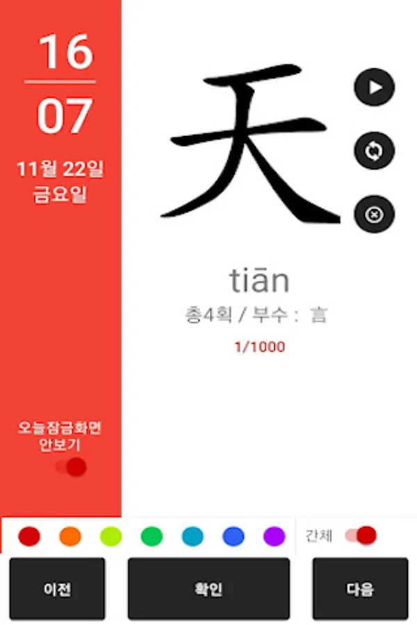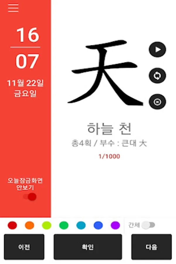 From time to time, the Cheonjamun app allows you to study Chinese characters more happily through stroke animation support and follow-up function.