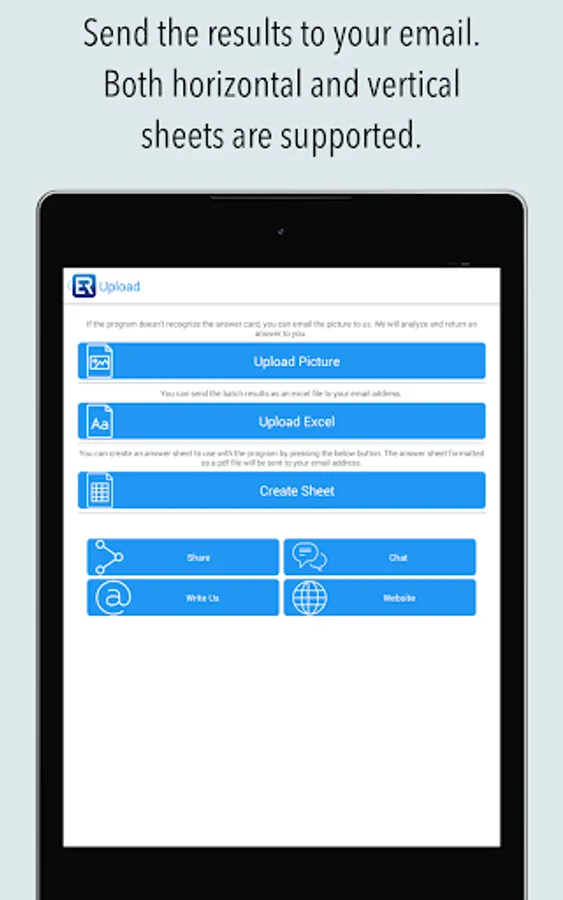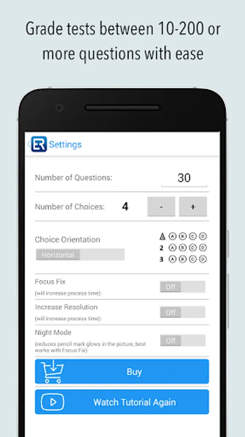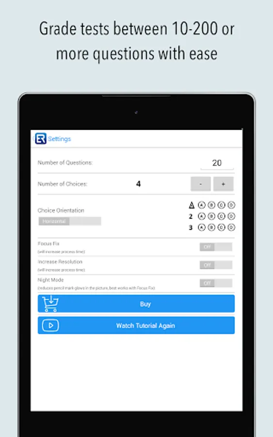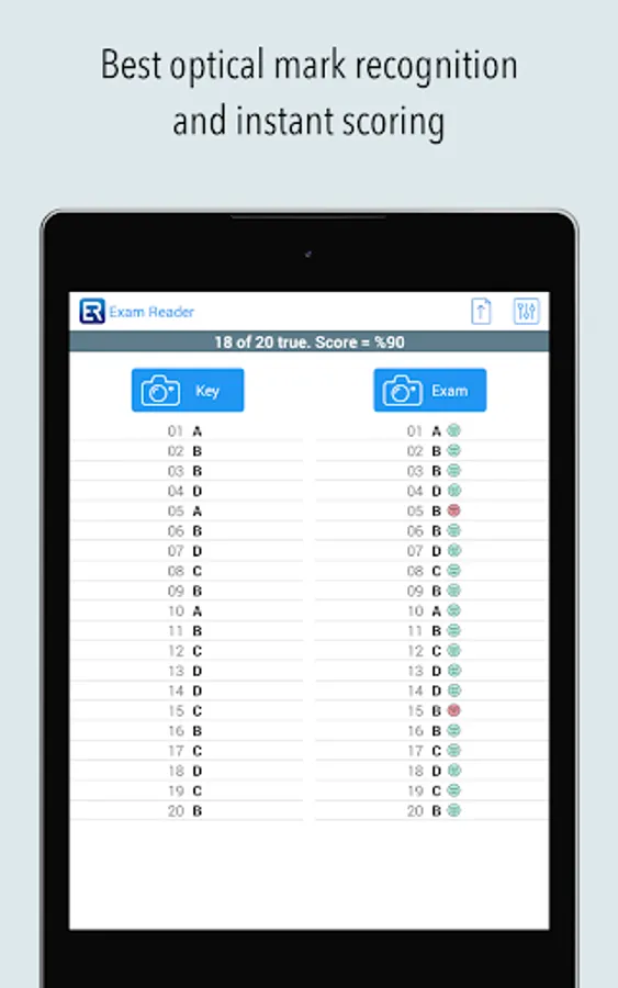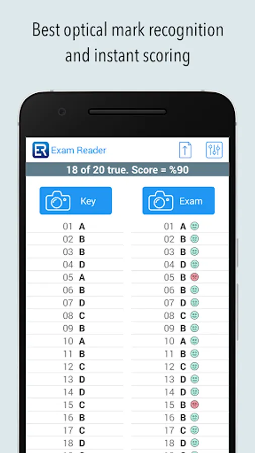 Grade multiple choice tests, quizzes, and assessment papers by using your phone's or tablet's camera as a grading scanner. It can also read over-written marks.