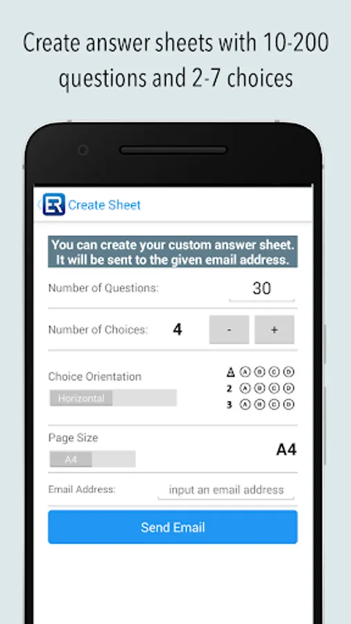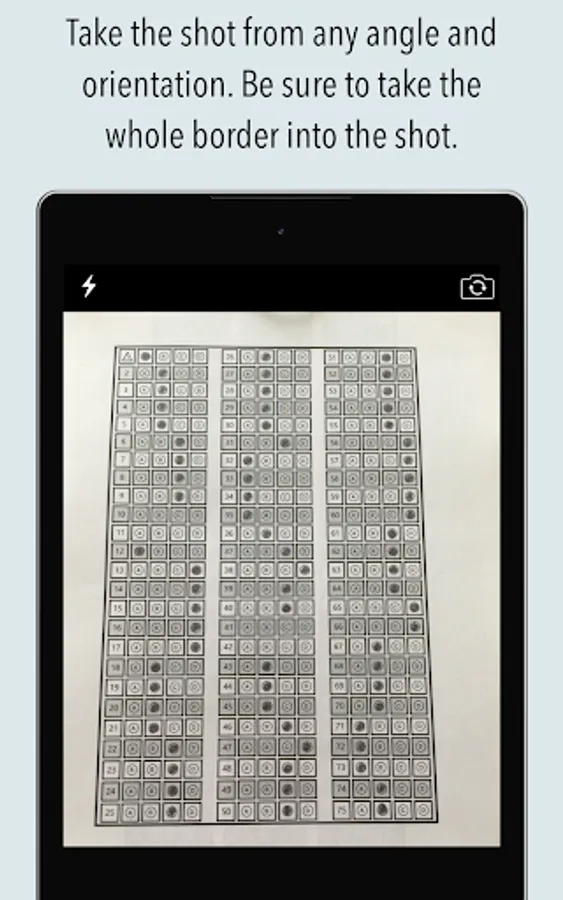 %100 success rate if used as described. Supports from 5 to 200 questions and 2 to 7 choices. Both horizontal and vertical sheets can be used (it is a first in this kind of application). Teachers and students can make their own sheets with our answer sheet generator (also a first). Right to left sheets (Arabic) support (again a first). Now with griddable questions support also.