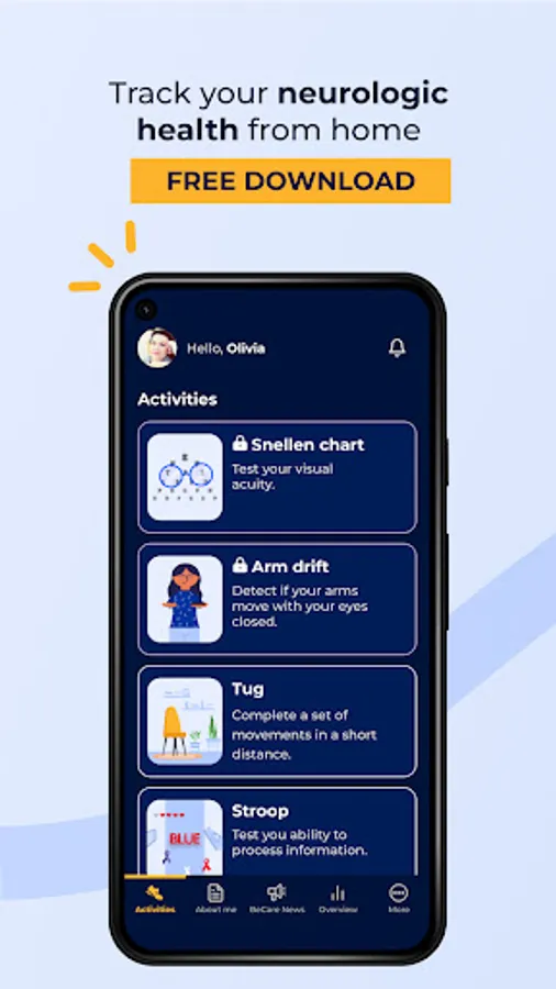 - Track your neurological health, receive reports, and decide whether to see a primary care doctor or neurologist for diagnosis or progress tracking.