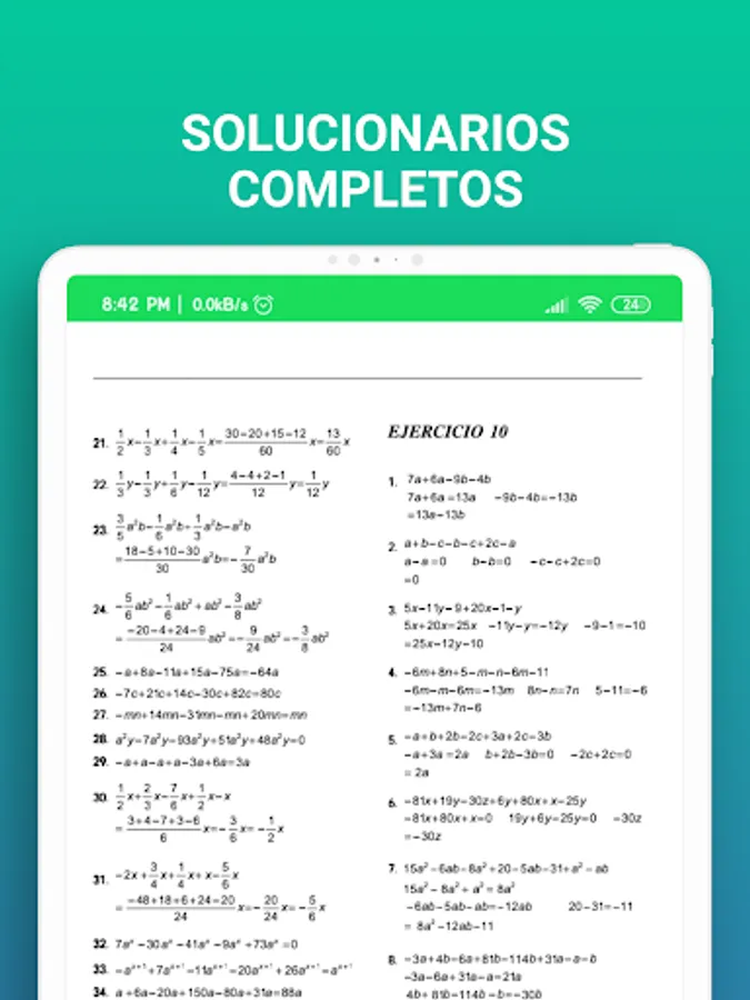 The application includes all the solved exercises of Baldor to practice and to check your results, and use them as a guide for notes. Feel free to use the app for free, we will never charge you to use these as they are for public use. Feel free to download or print them if you wish.