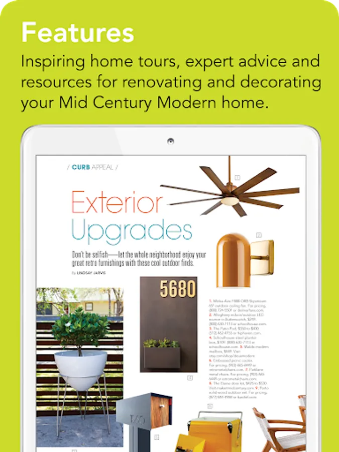 Features on period-specific products, such as appliances, collectables and home wares, reflect a deep appreciation for the lifestyle that goes along with loving all things Midcentury Modern. In every issue the editorial staff and style experts answer reader questions—identifying the makers and origins of midcentury treasures.