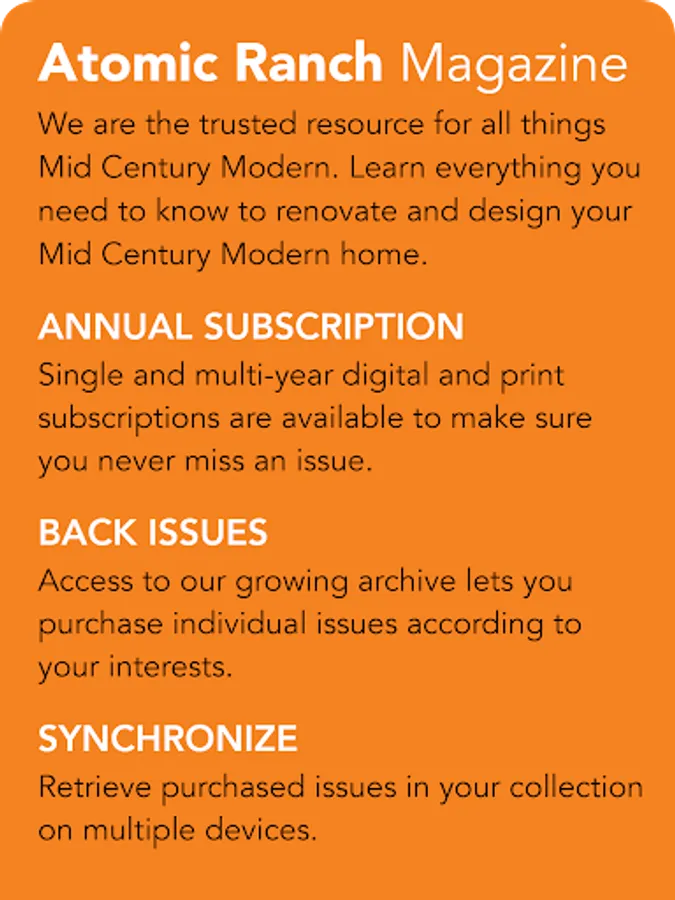 Whether you’re the lucky owner of a midcentury home or simply appreciate this iconic style; Atomic Ranch has something for you! Every issue is brimming with stunning homes that have been carefully restored to their original glory.