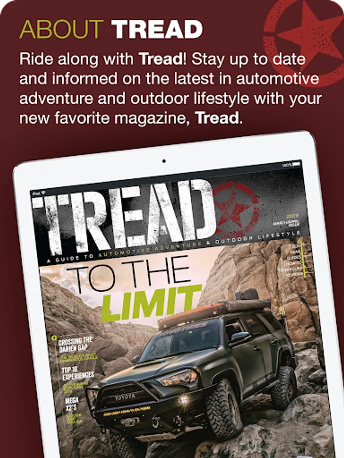 Tread is a new adventure for all. Its where one natural and ancient world meets a mechanical & modern one. A coming together of two passions: the automotive adventure and the great outdoor lifestyle.
