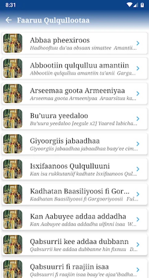 App kana keessatti faarfannaan ortodooksii tawaahidoo ta'aan 350 ol kan keessatti bakka tokkootti walitti qabamee waan ta'eef namootni haala salphaa ta'een badiyaas ta'ee magallaa bakka internet jiruus ta'ee hin jireetti akka itti fayyadamuu danda'aan kan isan taasisu gochuun kan qindaa'edha. Kanaaf namni bilbilaa isaa irratti fe'achuun yeroof bakkaan osoo hin dangeeffamin itti fayyadamuu ni danda'aa kuni immoo garee gurguddaa 15 jalaatti qoodun faarsaa kana kan qoophessinnee.