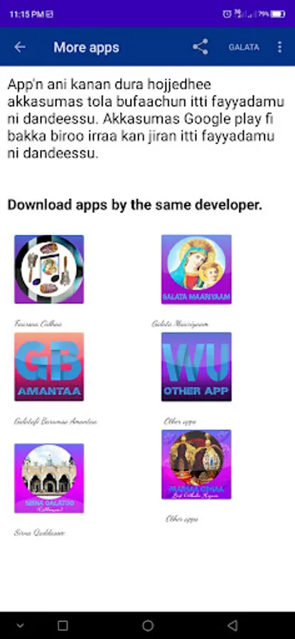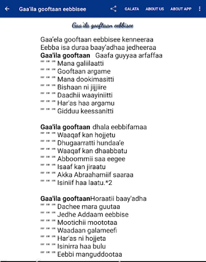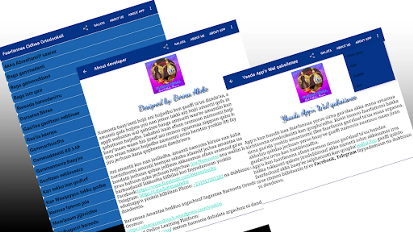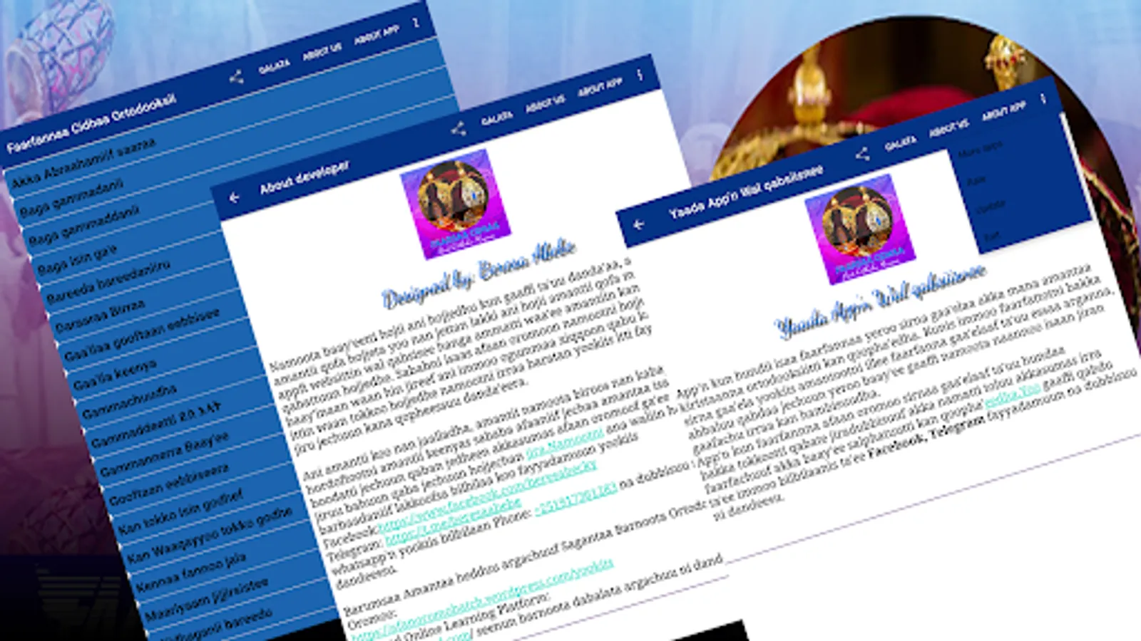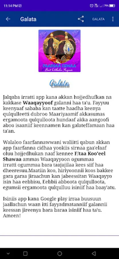 App'n kun faarsaa yeroo cidhaa bakka adda addaatti akka seeraf sirna mana amantaa kiristaanna ortodooksiitti kan qophaa'eefi qindaa'eedha. App kana keessatti dhimma dhuunfaan wal qabsiisnee daata nutti ol sassabnu tokko illee hin jiru. App kana bilisan bilbilaa keessan irratti fe'uun fayyadamu ni dandeessu. App kana fe'uun yoo rakkoon isiin muddatee immoo lakkoofsa bilbilaan yookaan facebook irraan nuu dubbisaa.