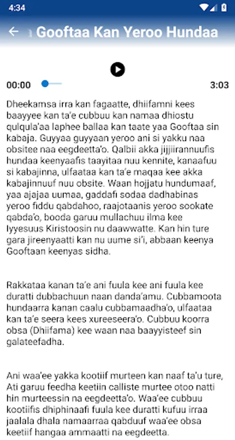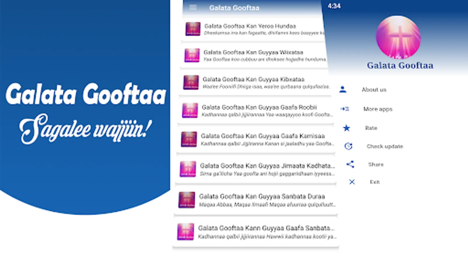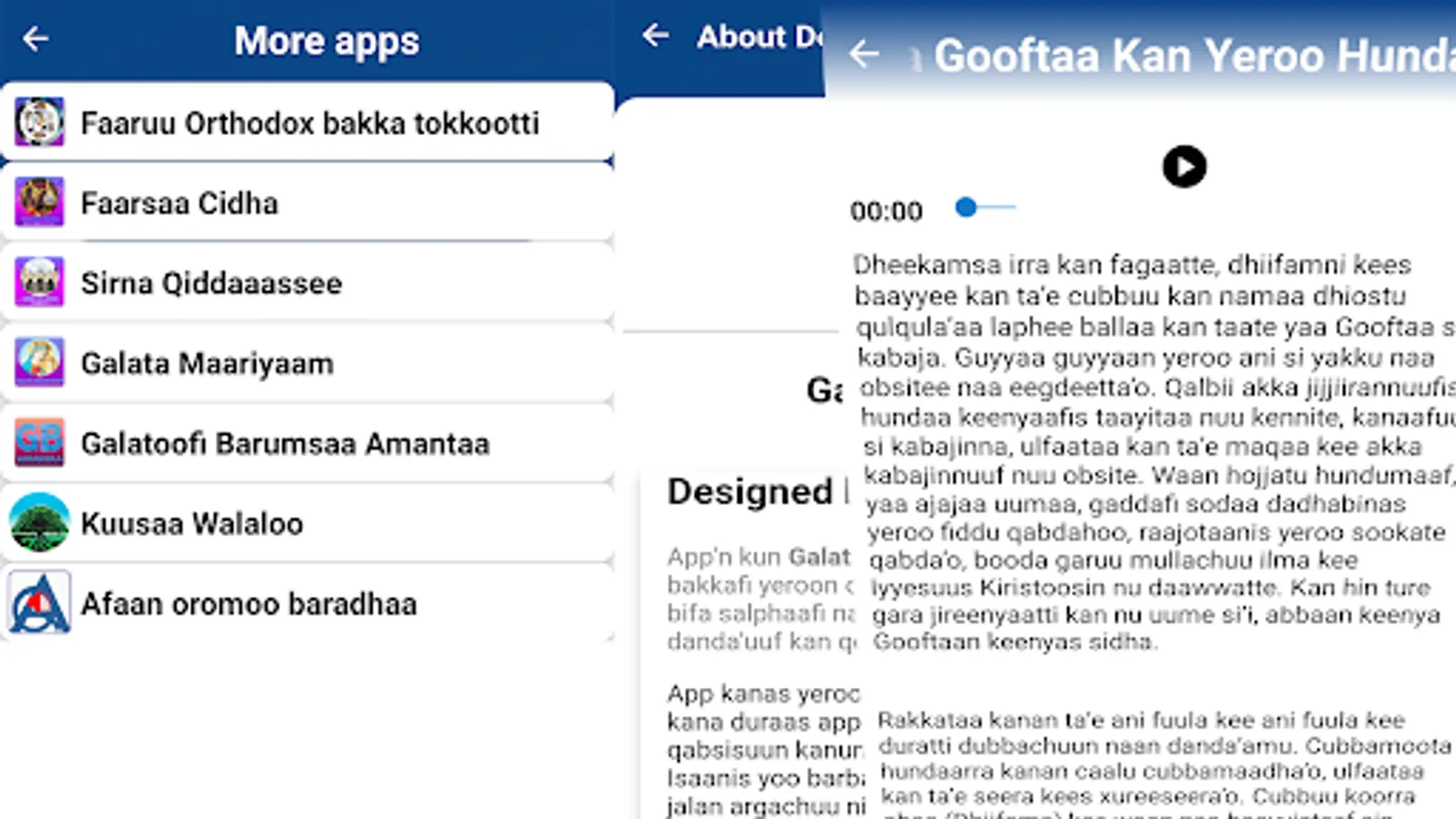 Galanni gooftaa kann yeroo hundaa kun wiixataa hangaa sanbataa guddaatti kadhannaa kadhattamu hundaa kan of keessa qabudha. Kadhannaaf namoota hundaafi bakka jiraan maraati akka itti fayyadamu danda'annif immoo fedhaa waaqayyoo ta'ee sagalee wajjiin waan qophaa'eef namootni hundii haalla kadhannaaf tolun kadhachuu, galateeffachu akkasumas waaqayyoon ittin wammachuu ni danda'uu. Anis app kana gaafan hojjedhe isiin biraan ga'uu keessi koo baay'ee itti gammadadha. Waan gaarii hojjechu, takkummaan waan guddaa hojjeechu miti. Adeemsan ta'aa waan ta'eef gara fulduraattis fedhaa waaqayyoo ta'ee app biraas itti fufuun nan hojjedha. Galanni Waaqayyoof haa ta'u. Waaqayyoon bakka jirtan hundaatti isin haa eebbisuu!