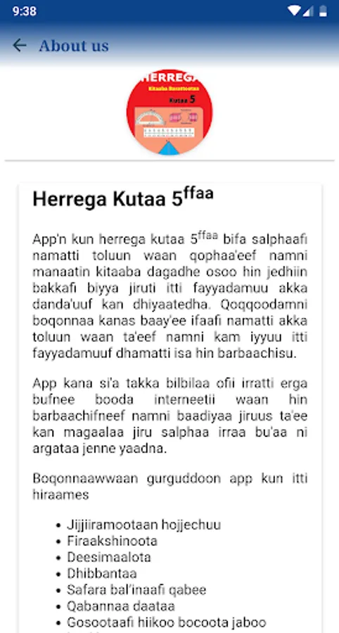 App'n kun herrega kutaa 5ffaa bifa salphaafi namatti toluun waan qophaa'eef namni manaatin kitaaba dagadhe osoo hin jedhiin bakkafi biyya jiruti itti fayyadamuu akka danda'uuf kan dhiyaatedha. Qoqqoodamni boqonnaa kanas baay'ee ifaafi namatti akka toluun waan ta'eef namni kam iyyuu itti fayyadamuuf dhamatti isa hin barbaachisu.