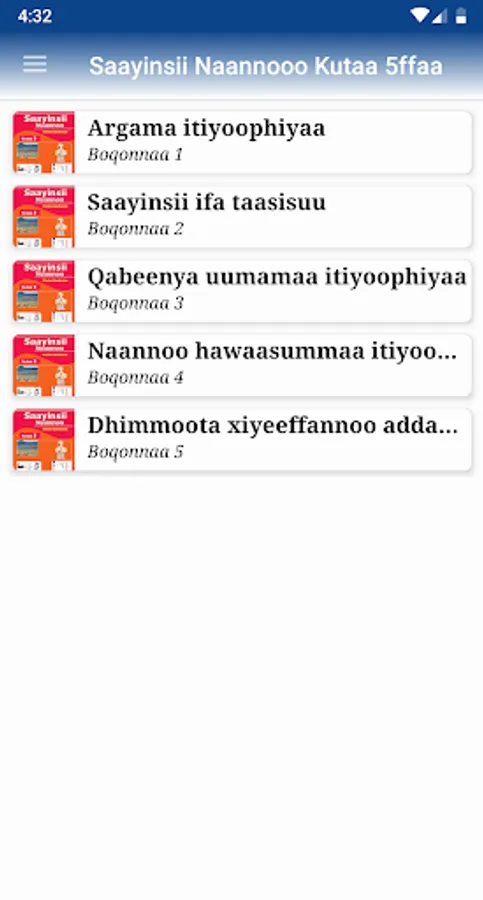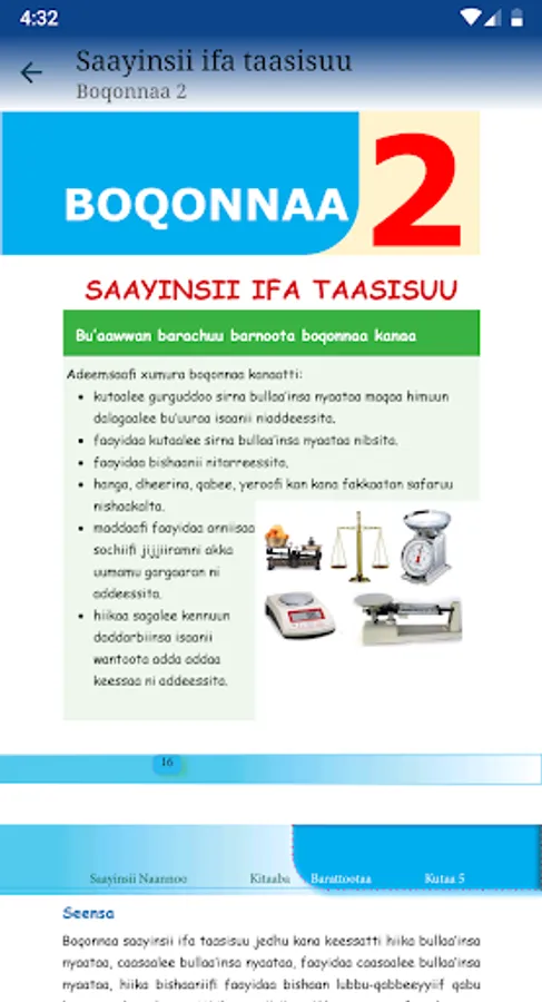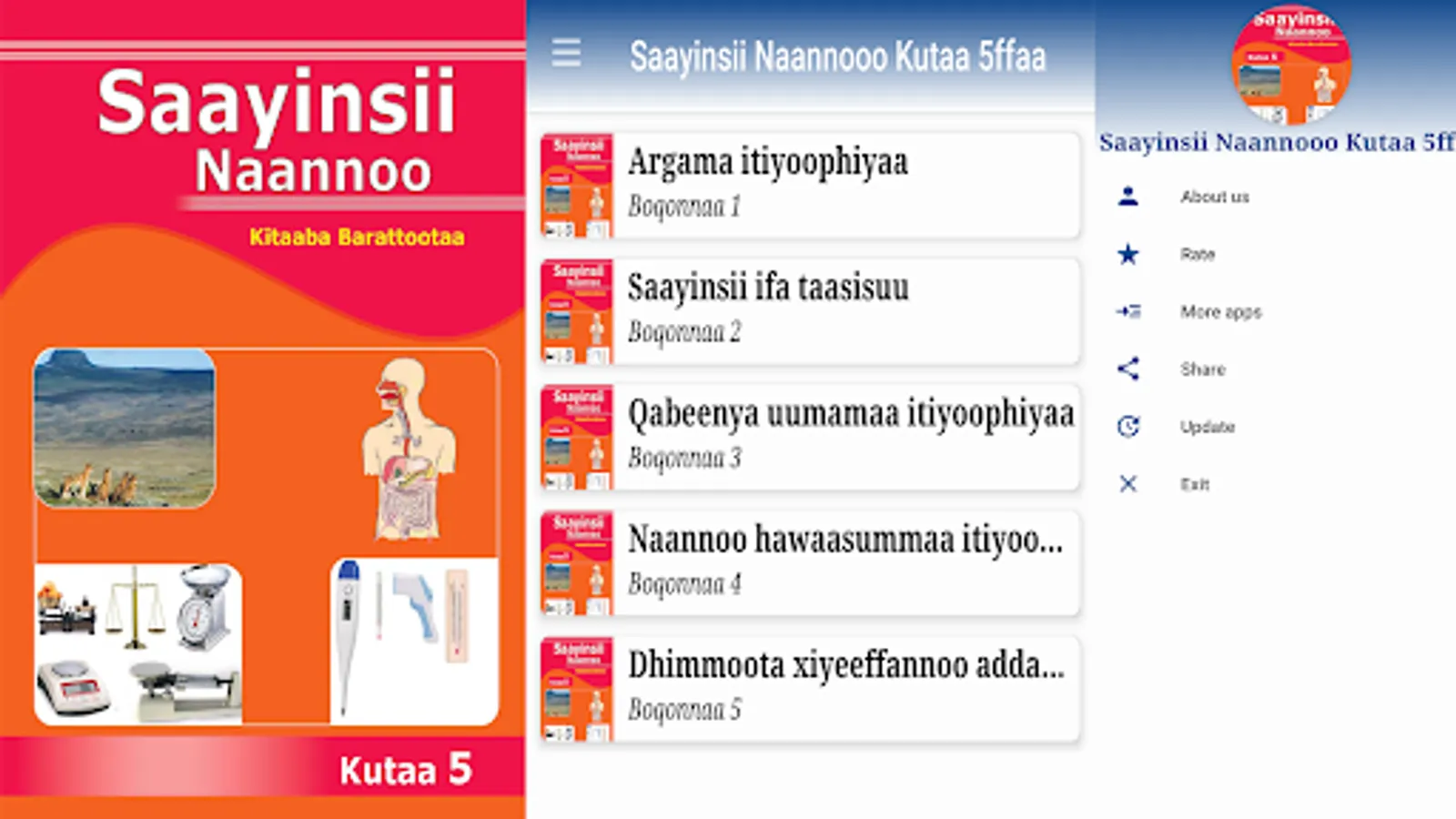 App'n kun Saayinsii naannoo kutaa 5ffaa bifa salphaafi namatti toluun waan qophaa'eef namni manaatin kitaaba dagadhe osoo hin jedhiin bakkafi biyya jiruti itti fayyadamuu akka danda'uuf kan dhiyaatedha. Qoqqoodamni boqonnaa kanas baay'ee ifaafi namatti akka toluun waan ta'eef namni kam iyyuu itti fayyadamuuf dhamatti isa hin barbaachisu.