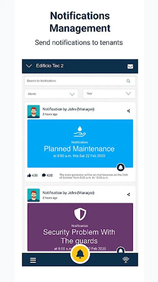 We provide you with the tool to centralize all communications, in one official channel, and send messages to your residents from the platform.